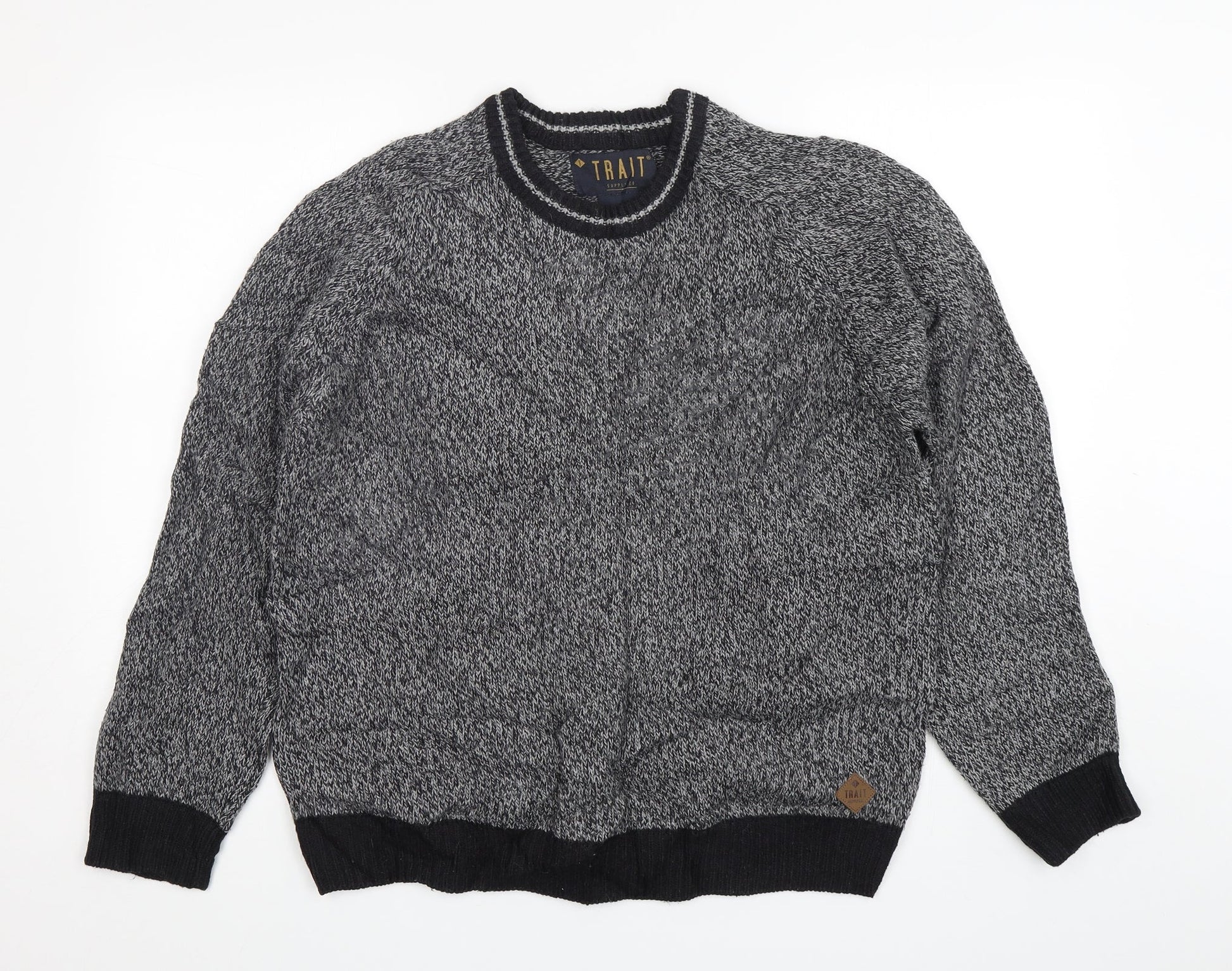Trait Mens Grey Round Neck Acrylic Pullover Jumper Size L
