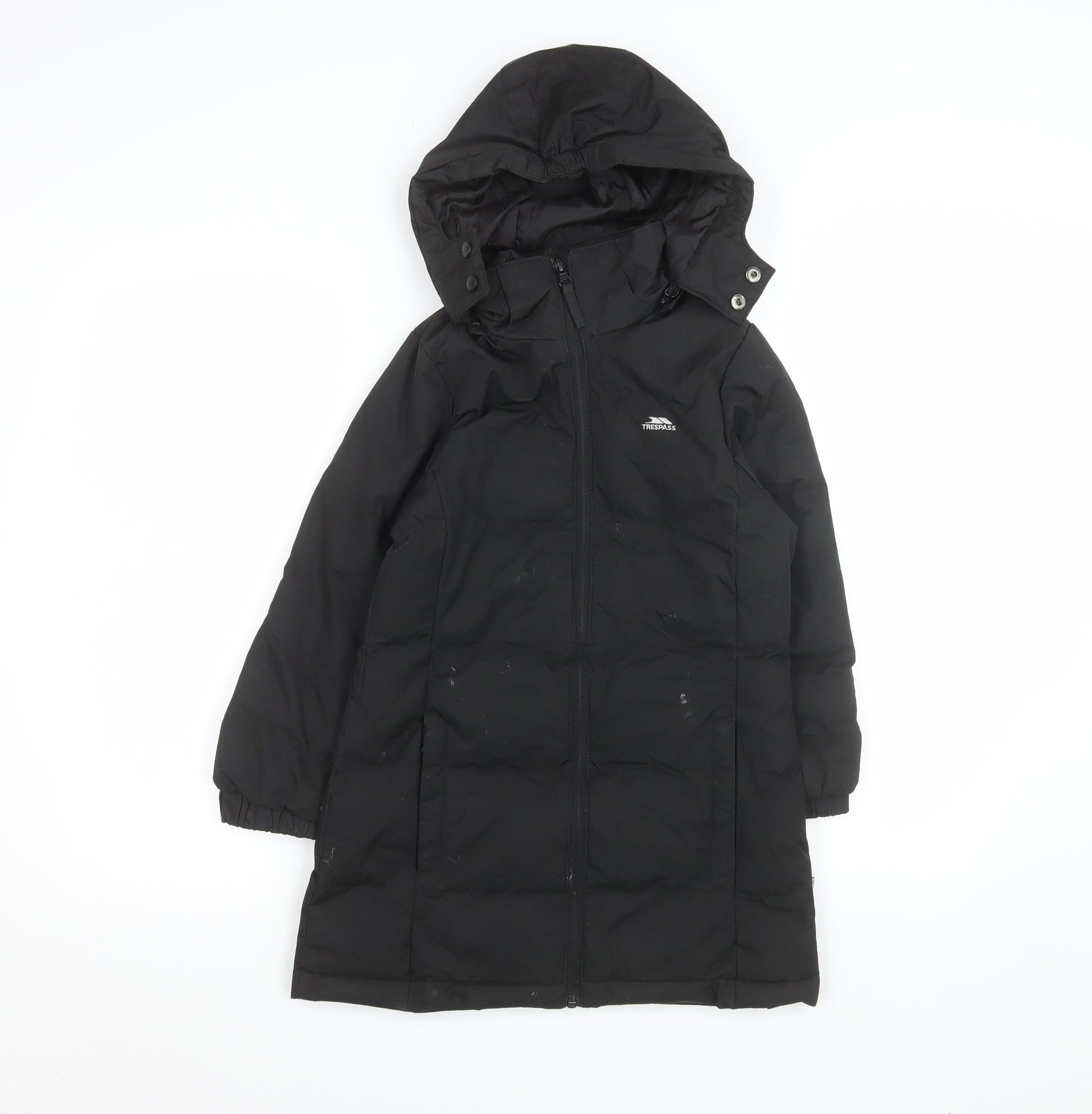 Trespass Girls Black Waterproof Hooded Long Puffer Coat 5-6 Years
