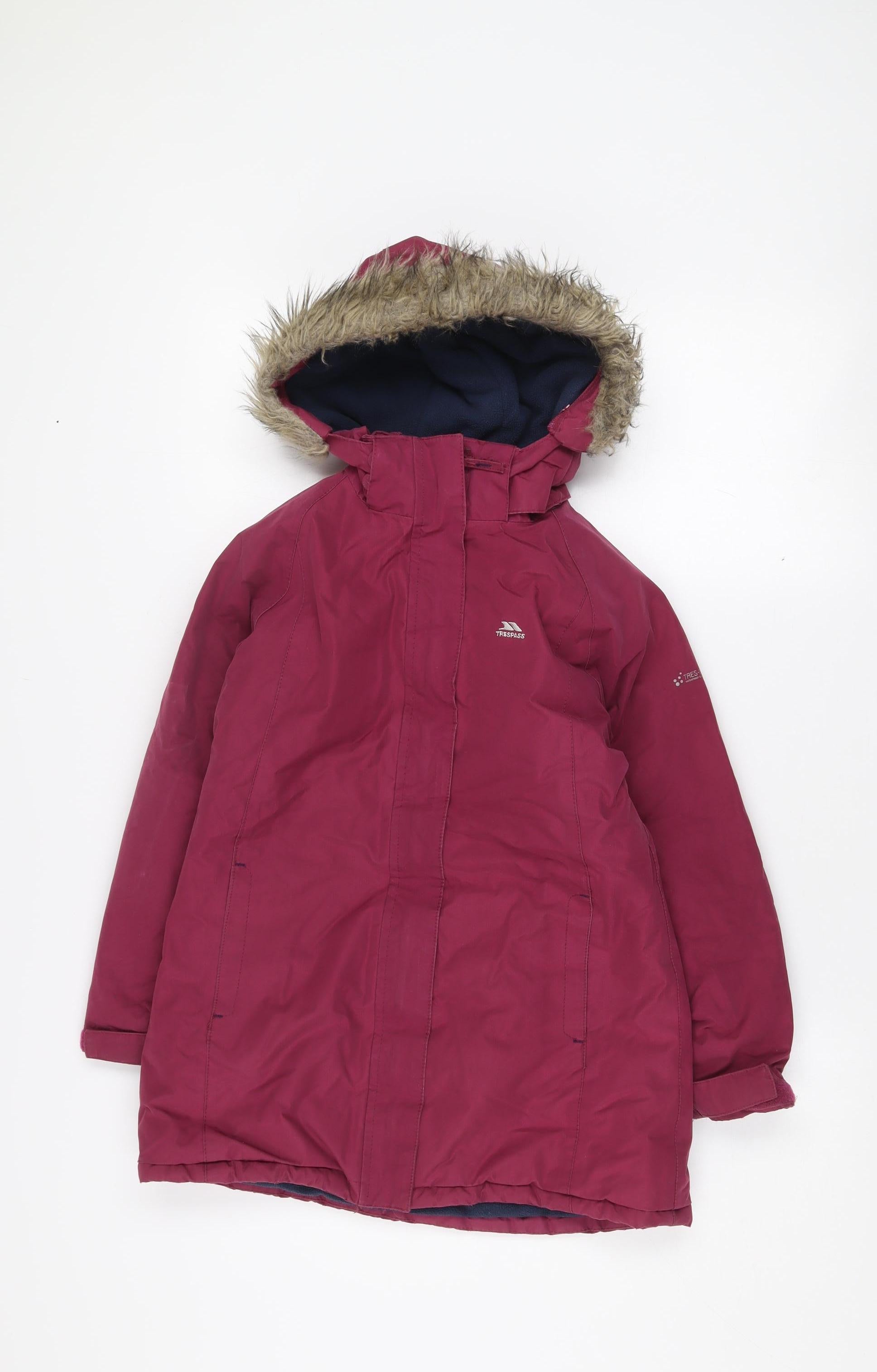 Trespass Girls Purple Waterproof Parka Coat 7-8 Years Hooded Winter Jacket
