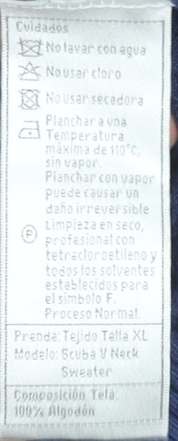 Trial Men Blue Cotton V-Neck Waffle Knit Pullover Jumper XL