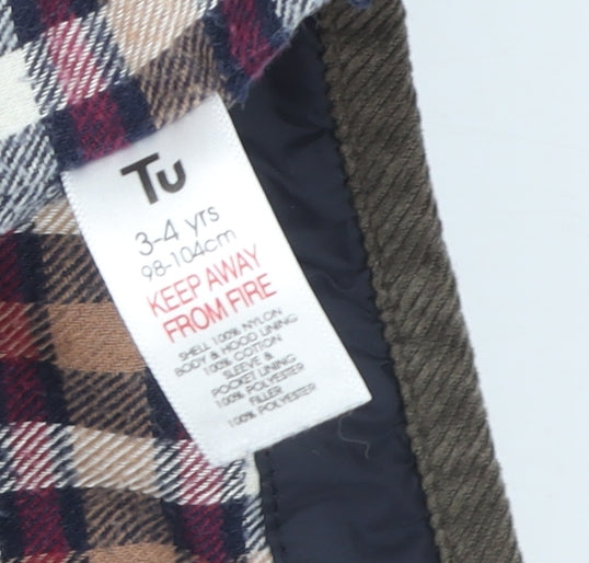 Tu Boys Blue Quilted Hooded Mid-Length Jacket 3-4 Years