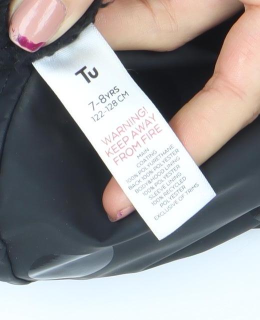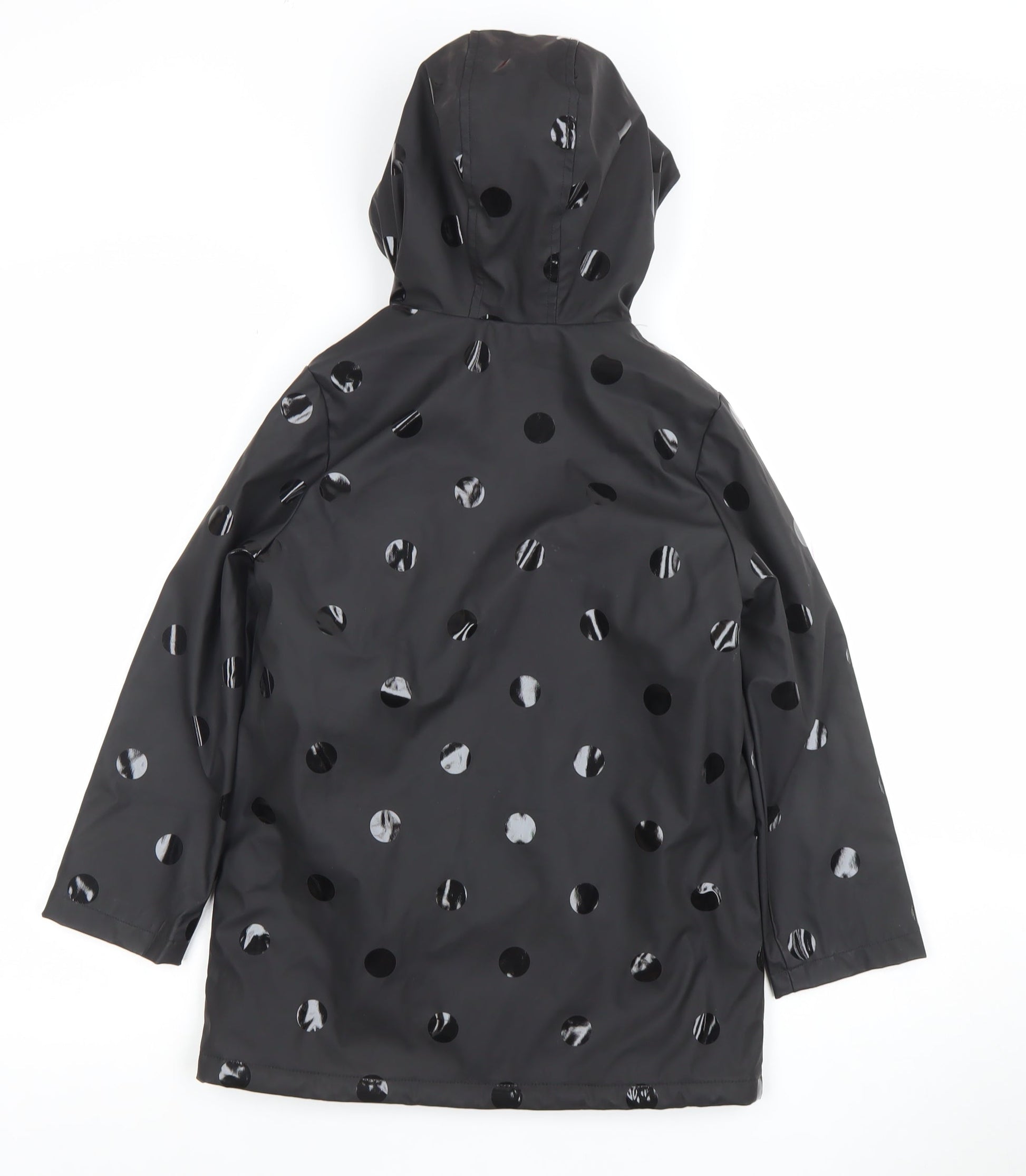 Tu Girls Black Polka Dot Waterproof Hooded Rain Coat 7-8 Years