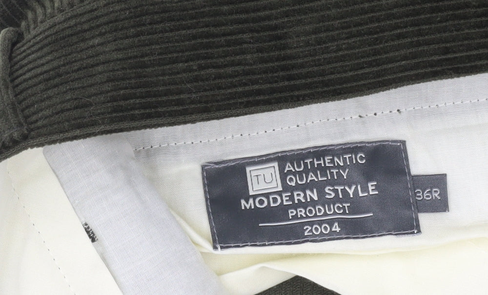 TU Men’s Green Corduroy Chino Trousers 36R Regular Fit