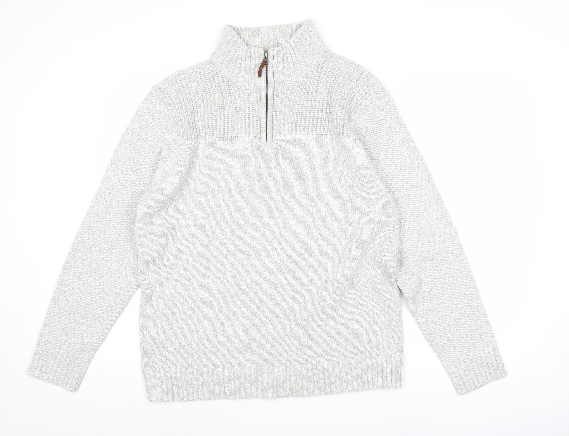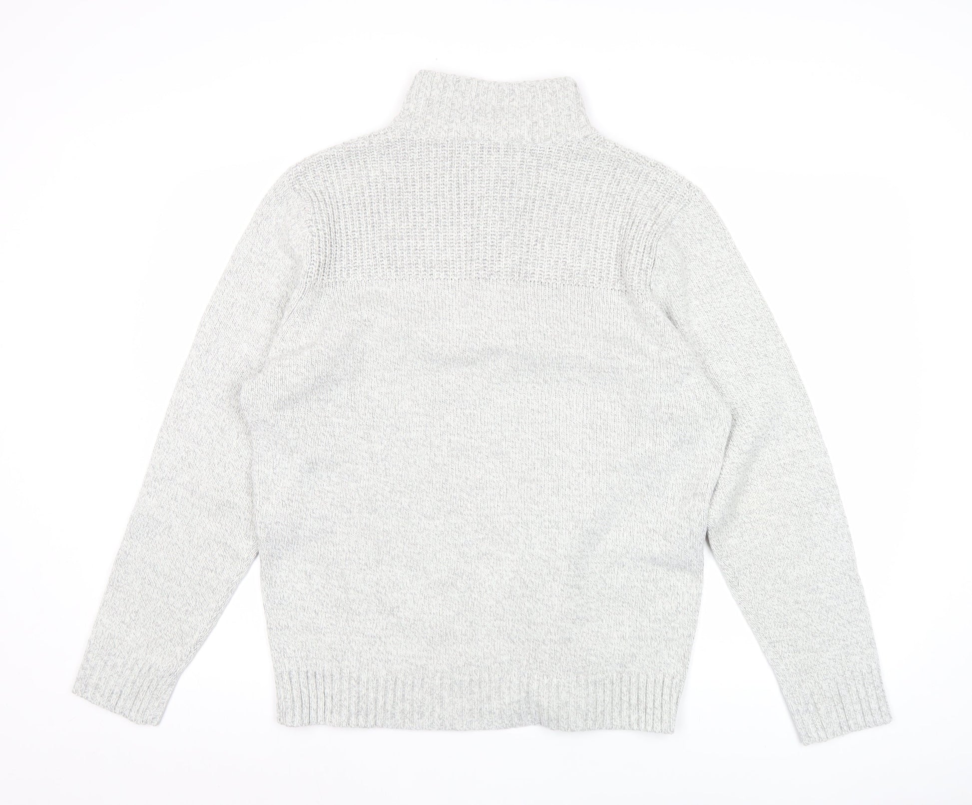 Tu Men’s Grey High Neck 1/2 Zip Chunky Knit Jumper Size L