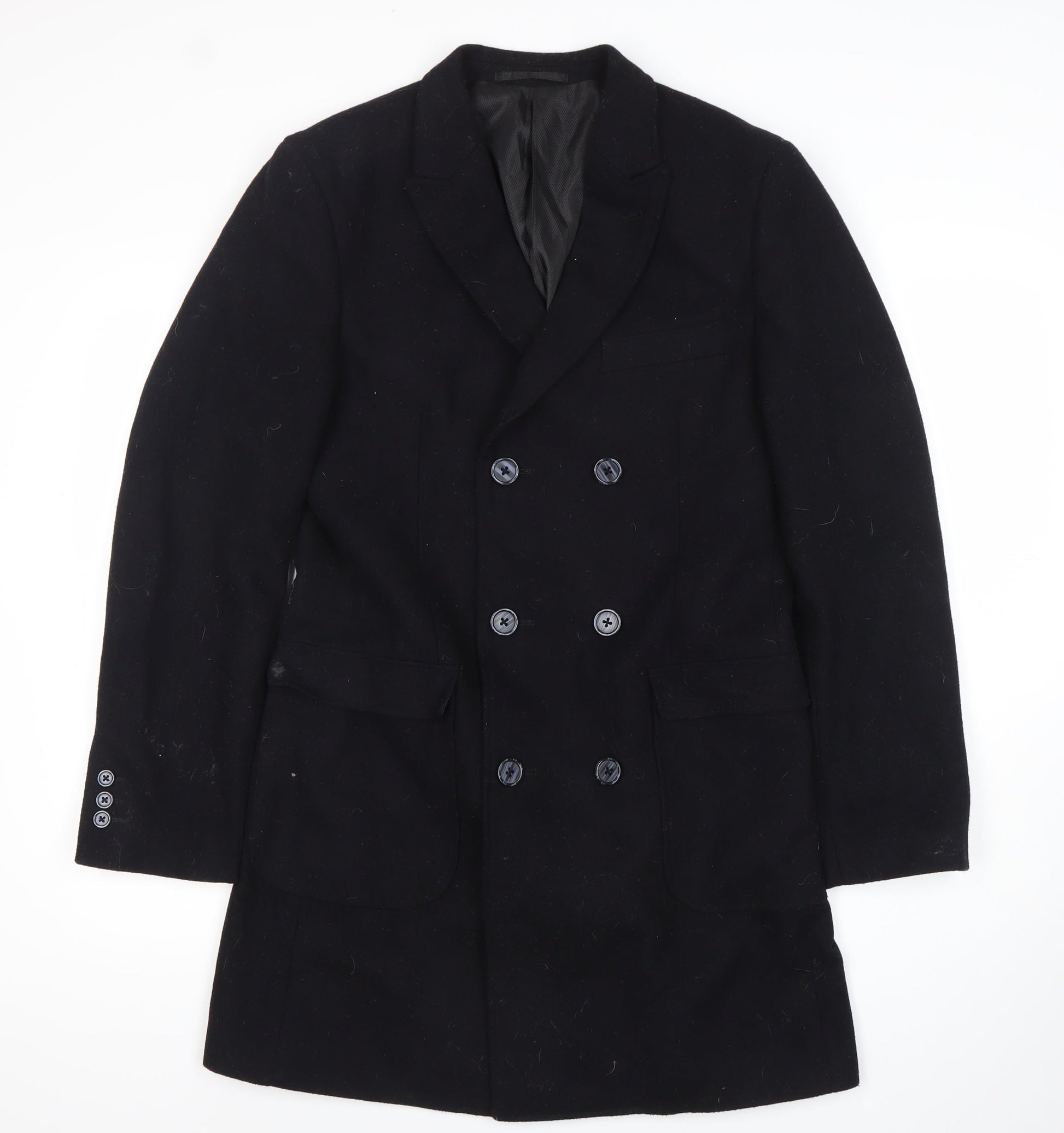 TU Mens Black Wool Blend Pea Coat Size S Mid-Length Classic Style