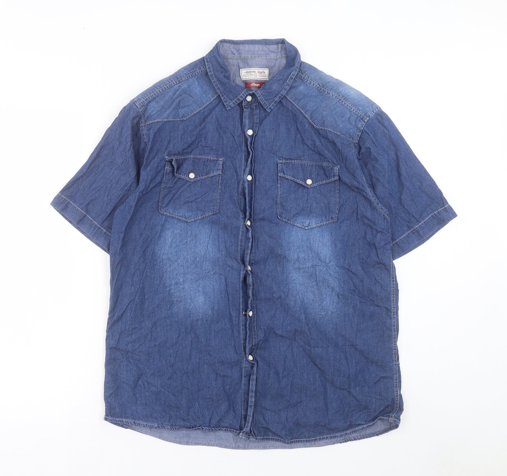 TU Mens Blue Cotton Button-Up Size L Collared Button