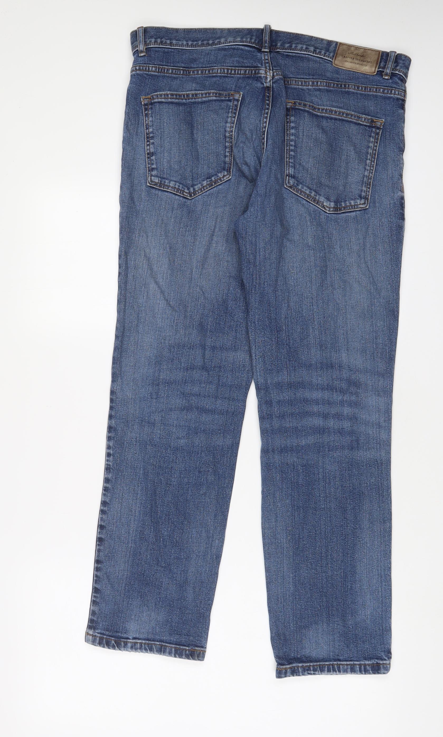 TU Mens Blue Cotton Straight Jeans Size 34 in L30 in Regular Zip - Short Leg, Pockets