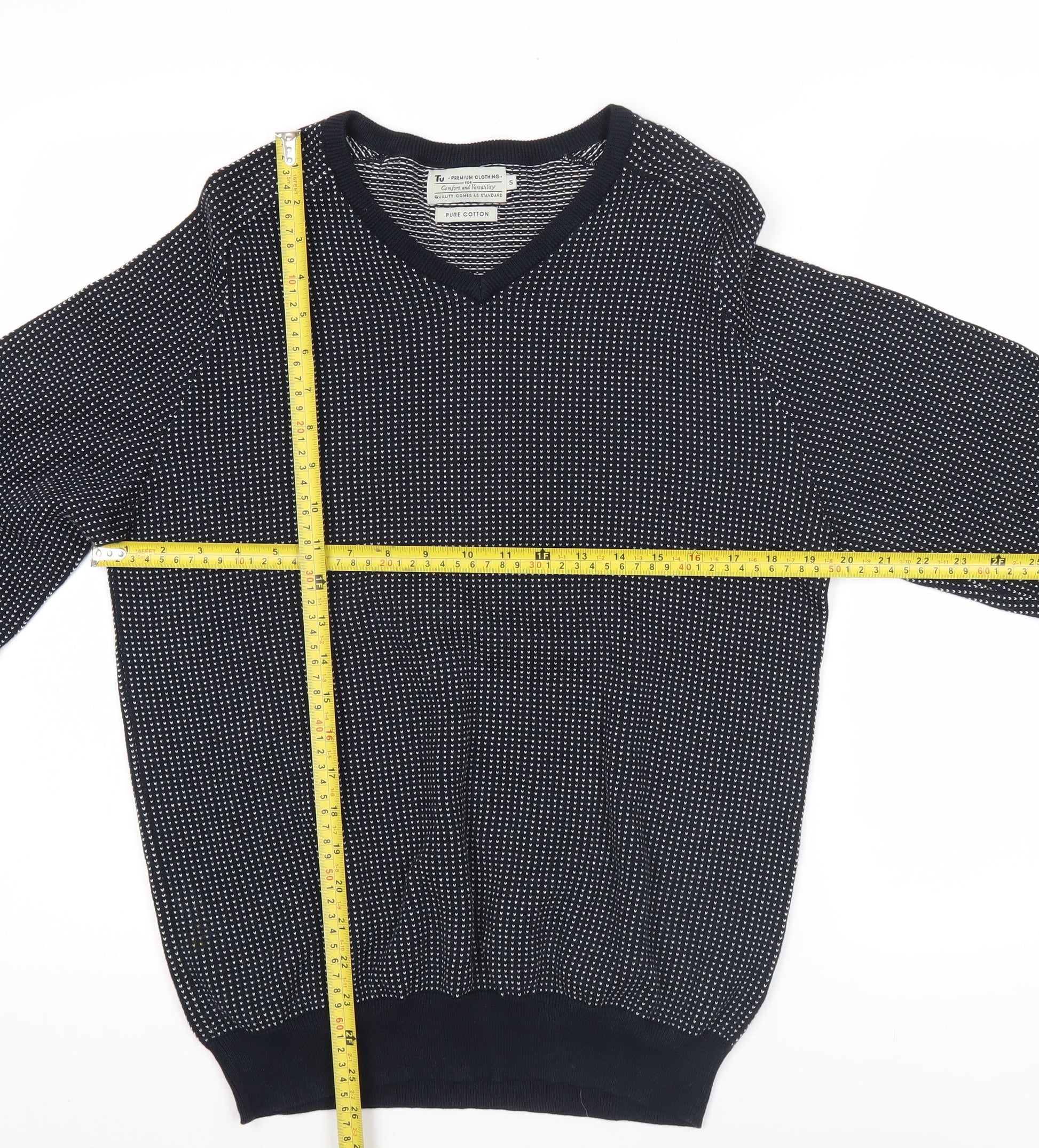 Tu Mens Blue Cotton V-Neck Geometric Knit Jumper Size S