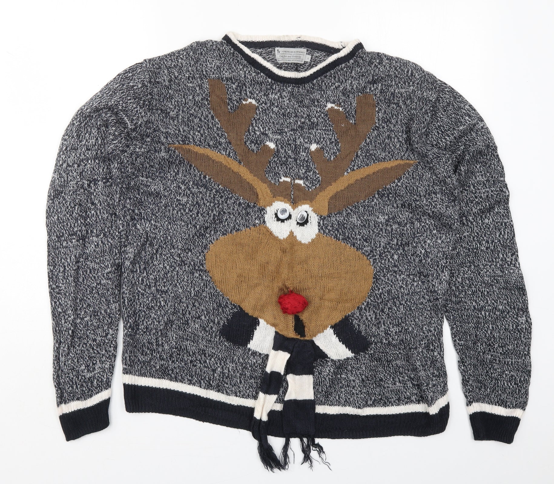 TU Mens Blue Crew Neck Acrylic Pullover Jumper Size L - Rudolph