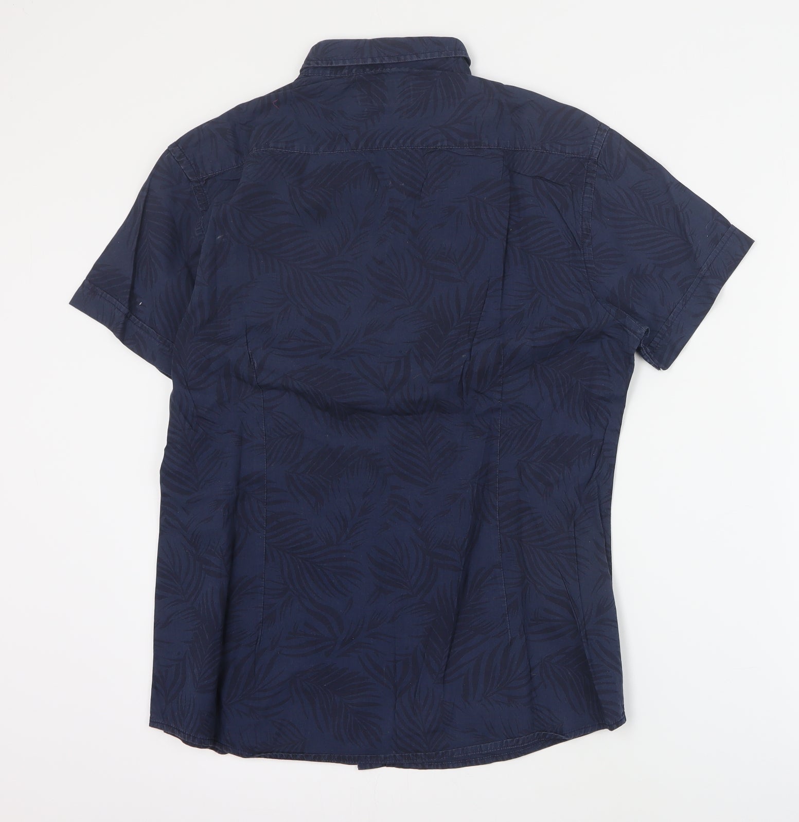 TU Mens Blue Floral Cotton Button-Up Size S Collared Button