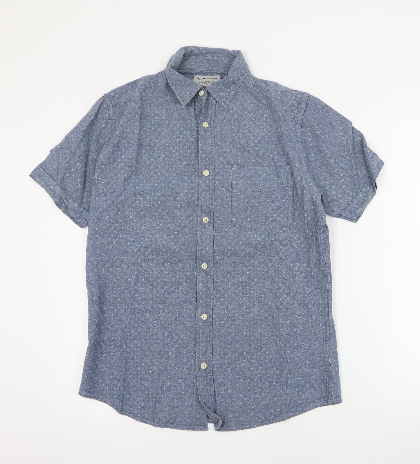 TU Mens Blue Geometric Cotton Button-Up Size S Collared Button
