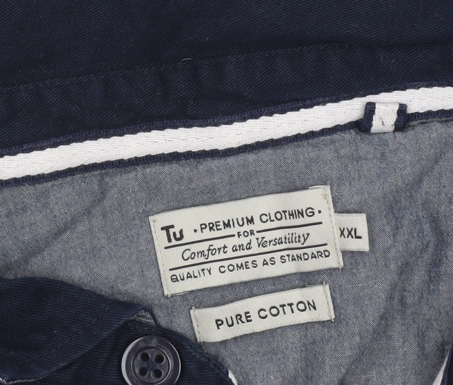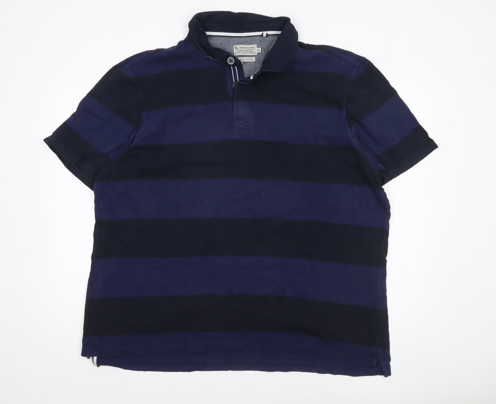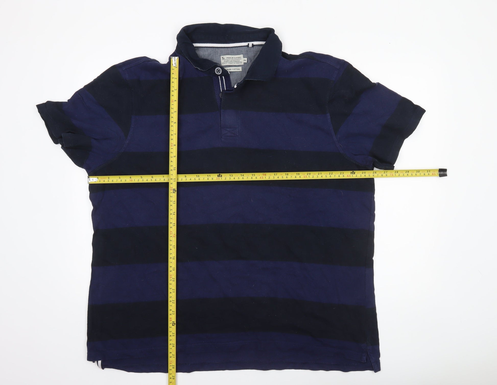 Tu Men's Blue Striped Cotton Polo Shirt 2XL Regular Fit