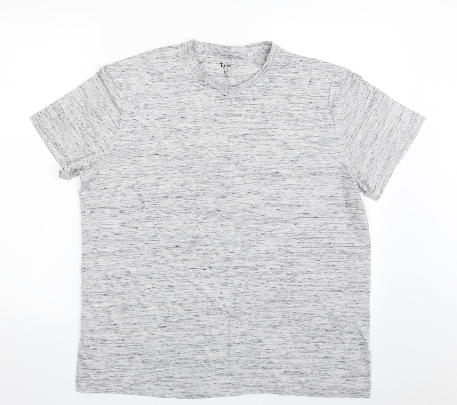 TU Mens Grey Cotton T-Shirt Size L Crew Neck