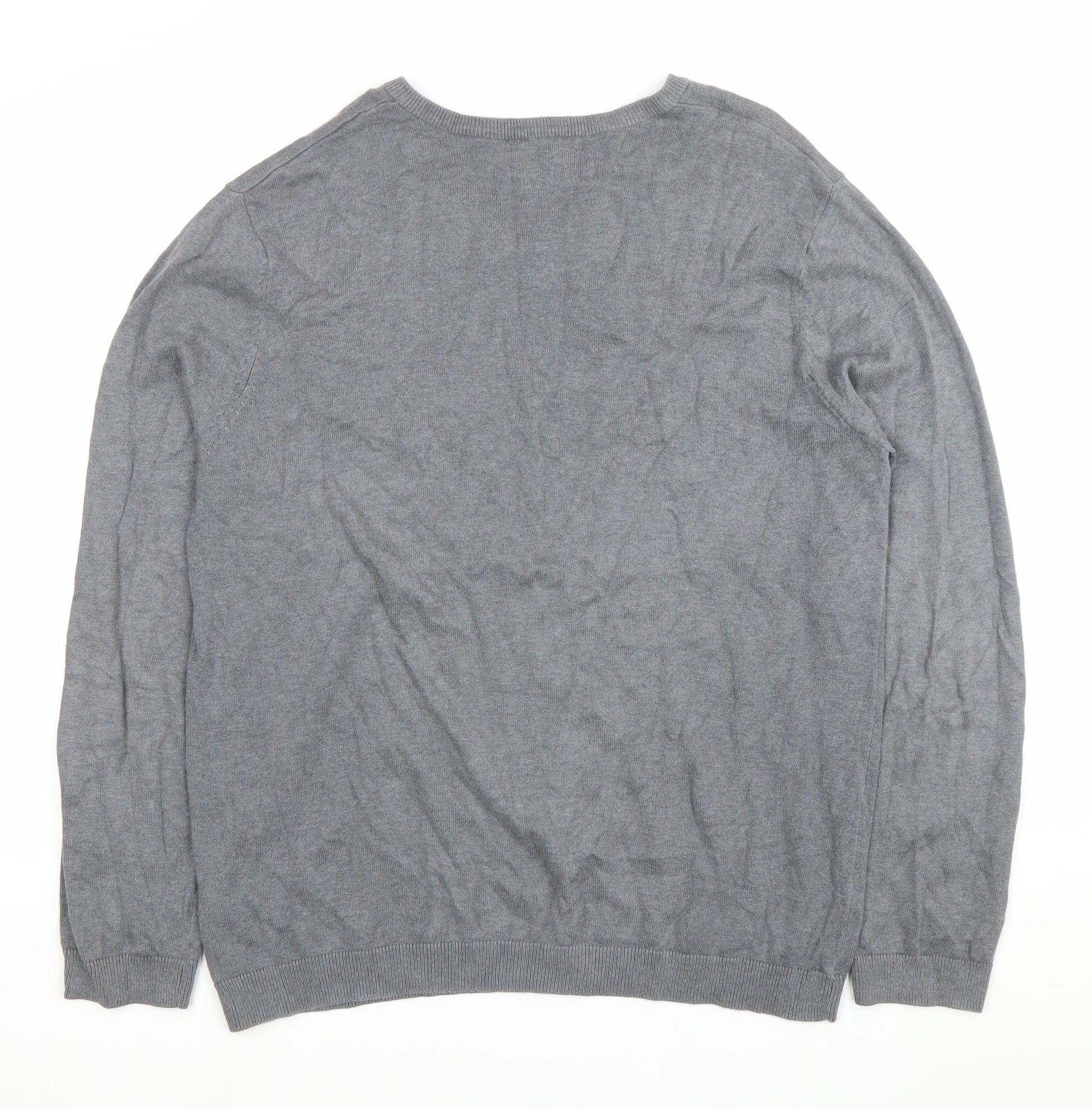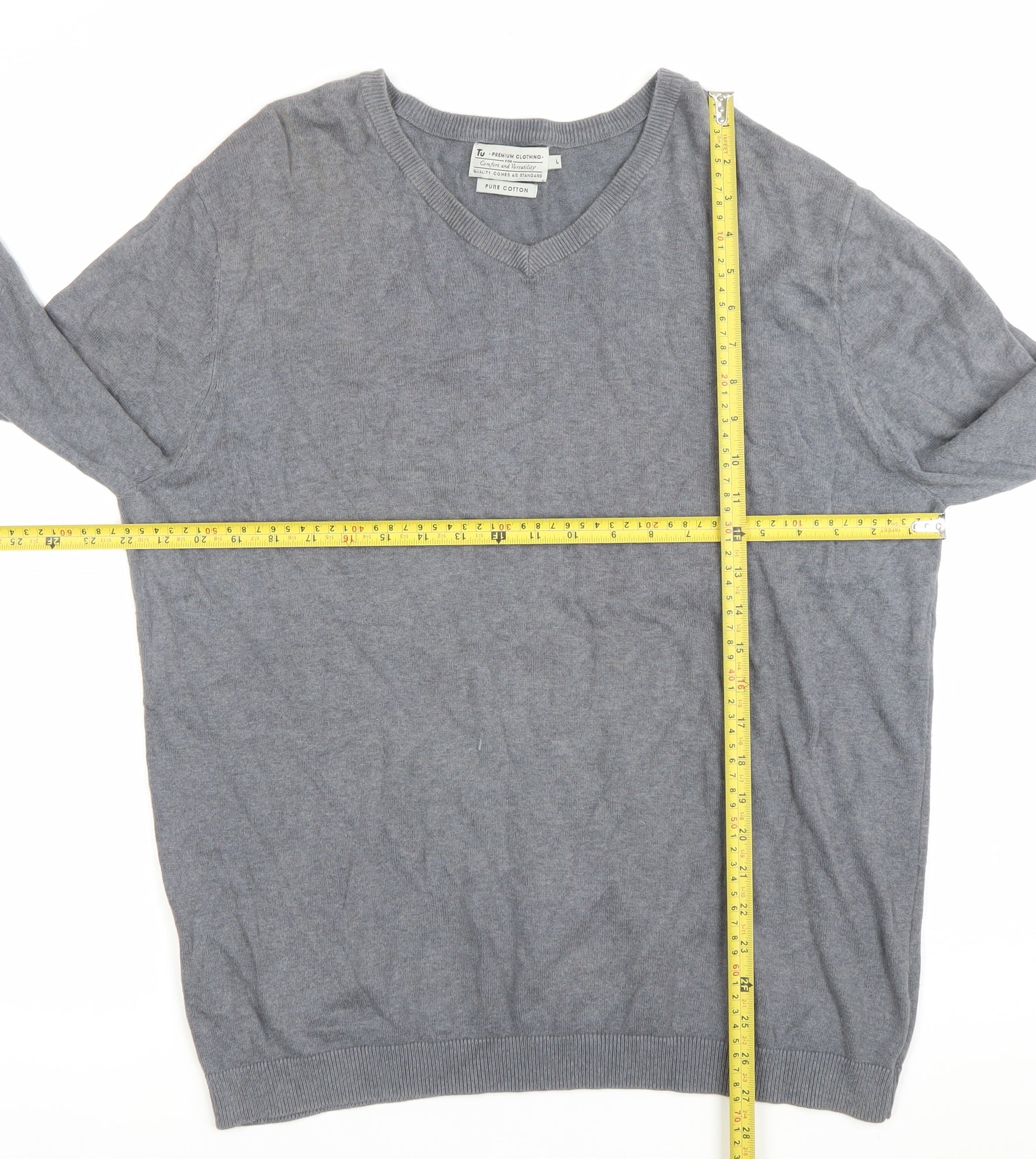 Tu Mens Grey Cotton V-Neck Pullover Jumper Size L