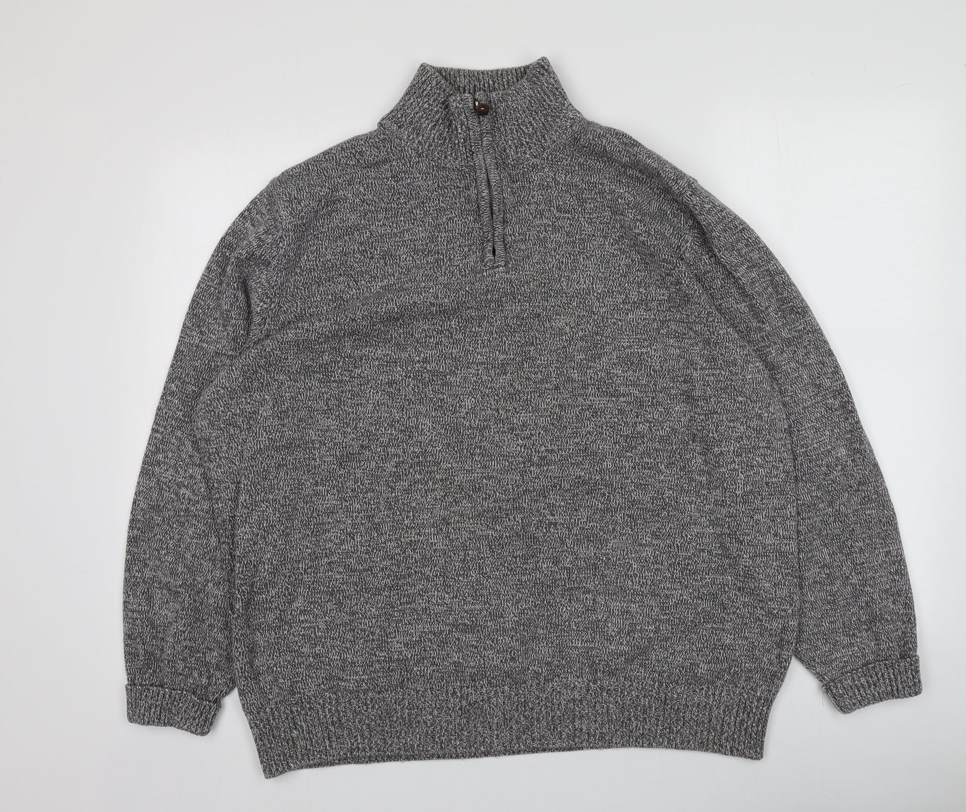 TU Mens Grey High Neck Cotton Pullover Jumper