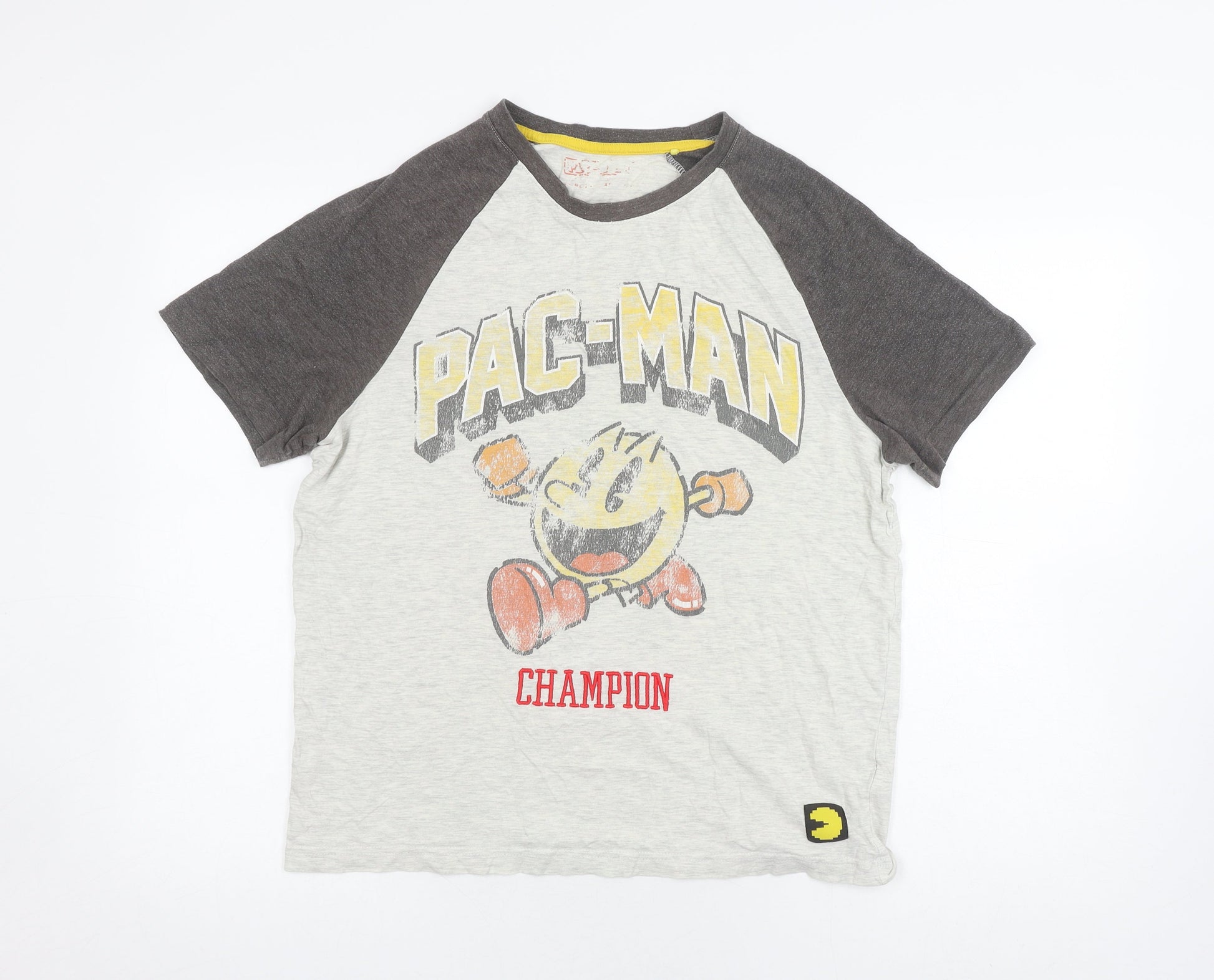 Tu Men's Grey Pac-Man Graphic Print T-Shirt, Size S