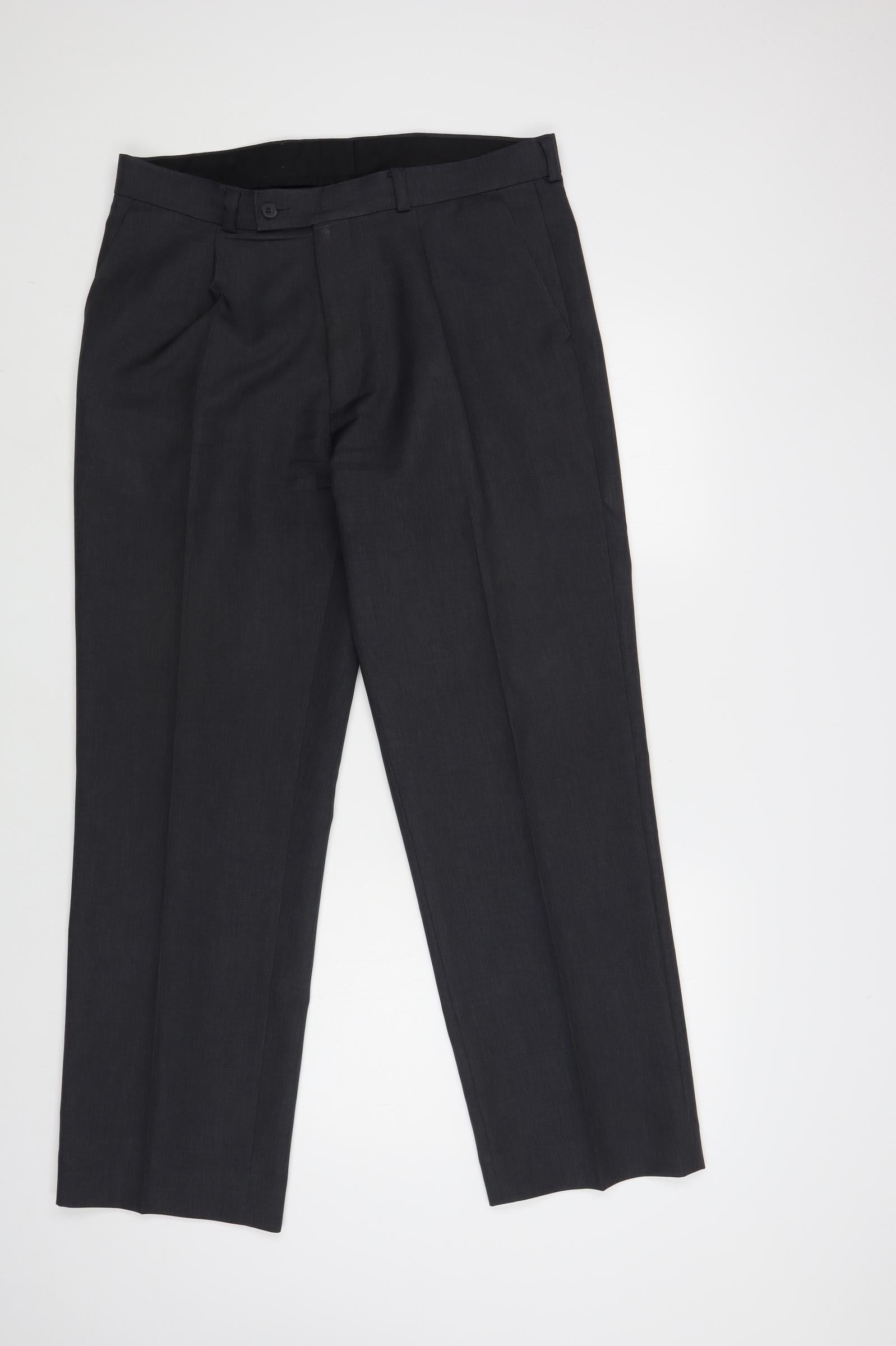 TU Mens Grey Polyester Dress Pants Trousers Size 34 in L29 in Regular Button