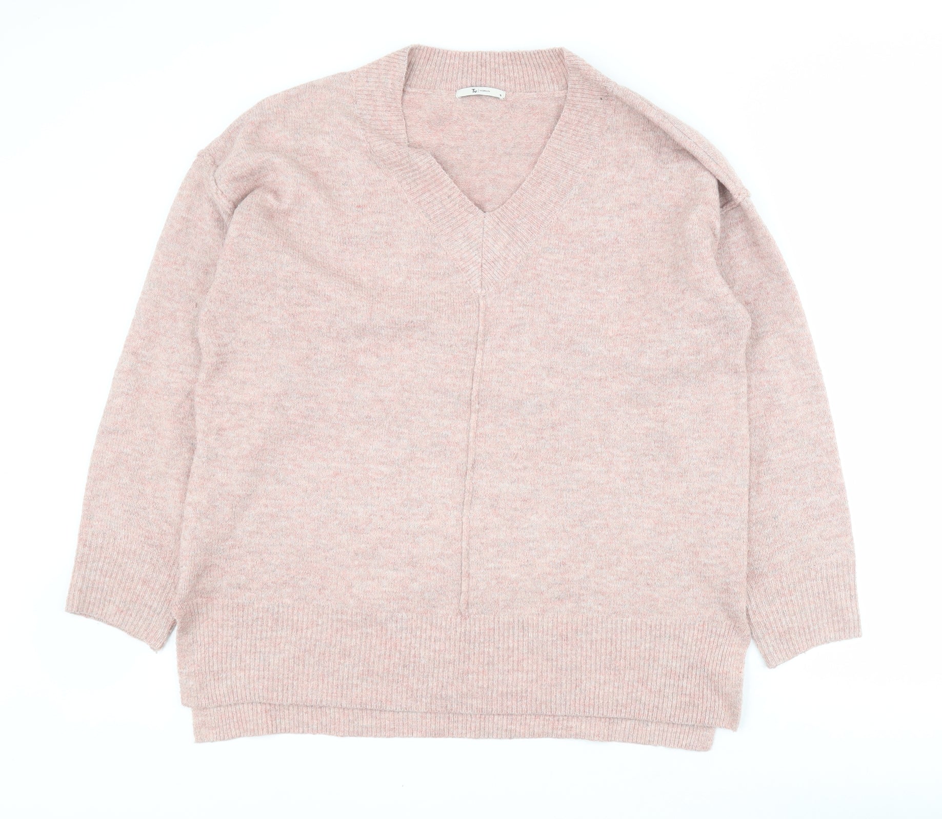 TU Mens Pink V-Neck Acrylic Pullover Jumper