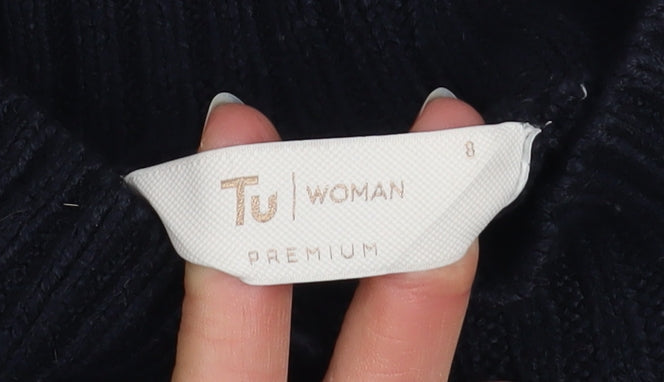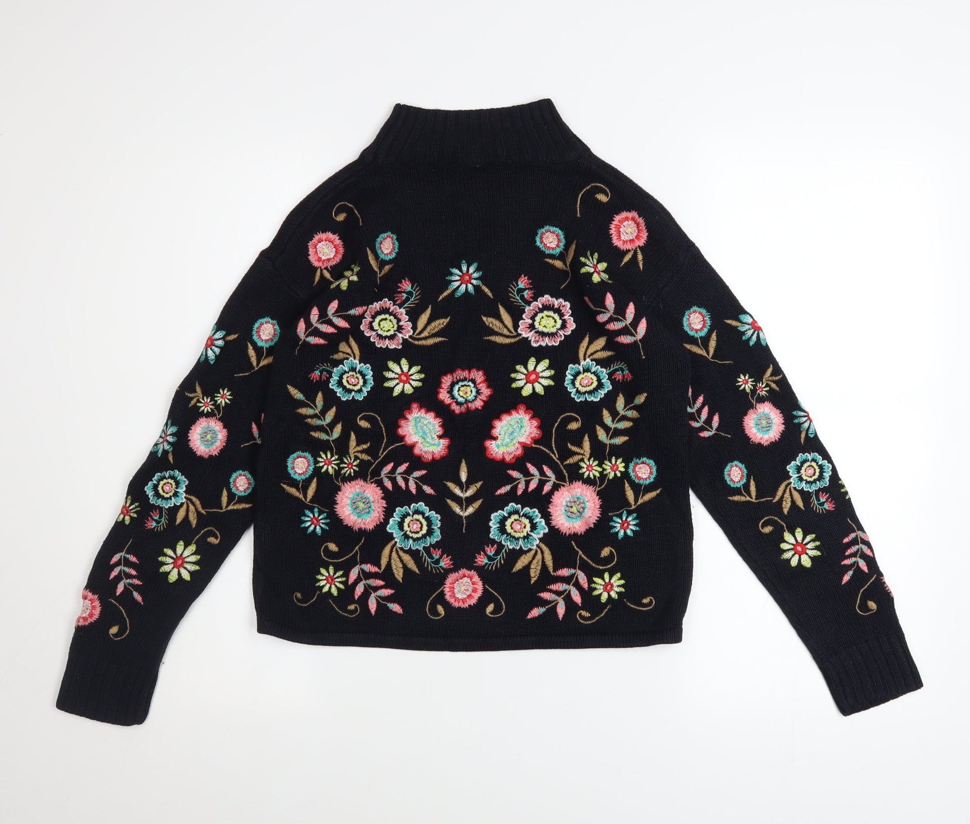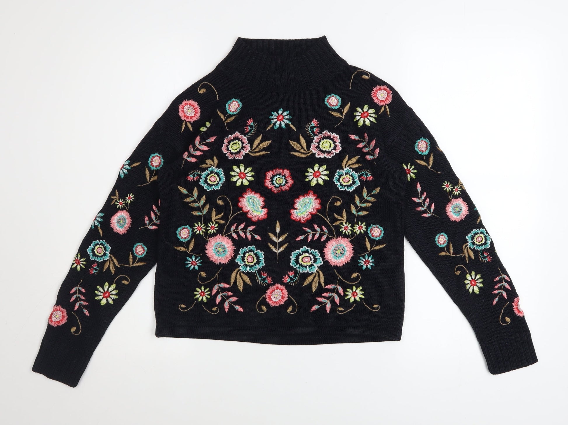 Tu Woman Black Floral Embroidered High Neck Jumper Size 8