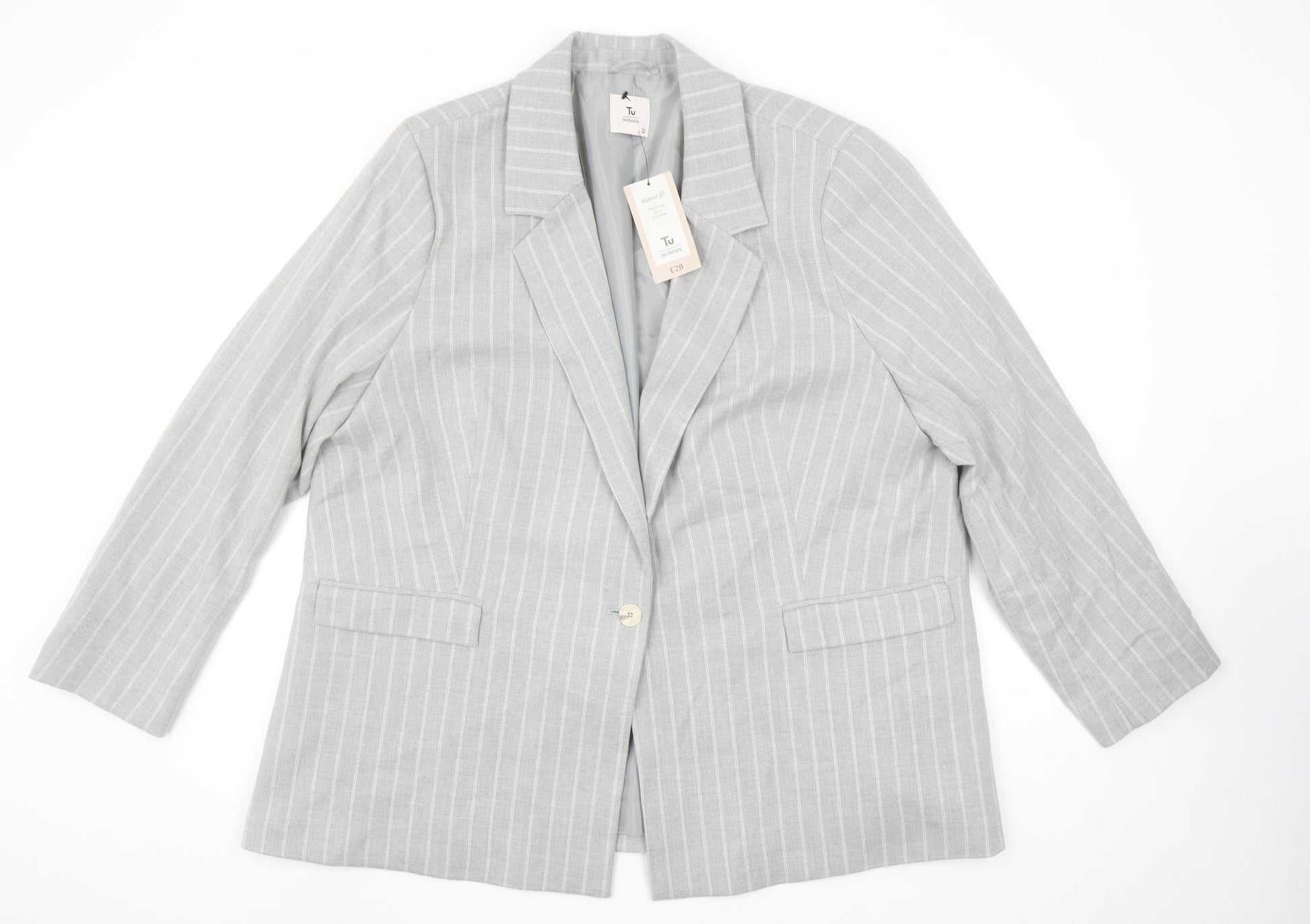 Tu Woman Grey Pinstripe Single-Breasted Blazer Size 22