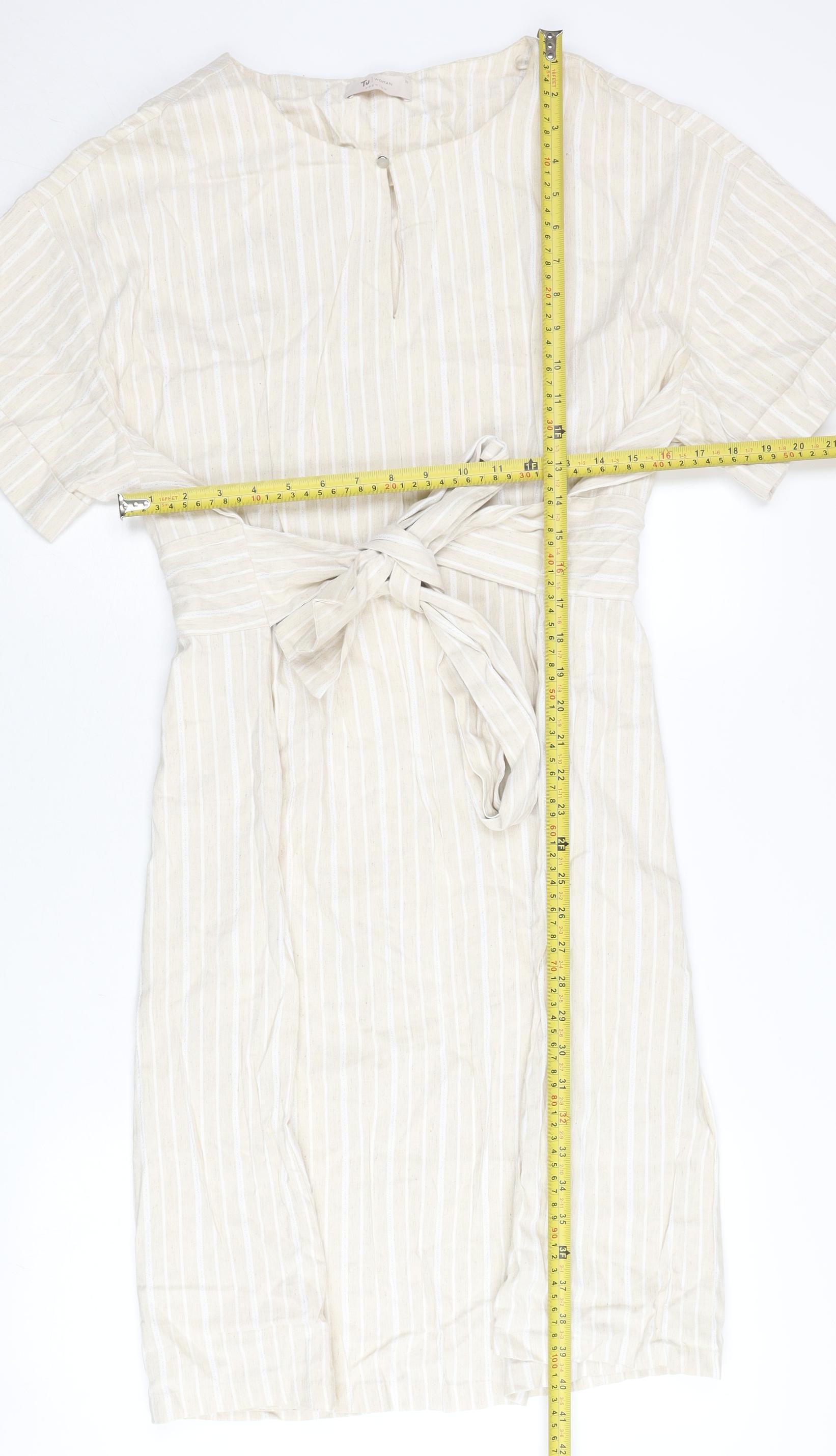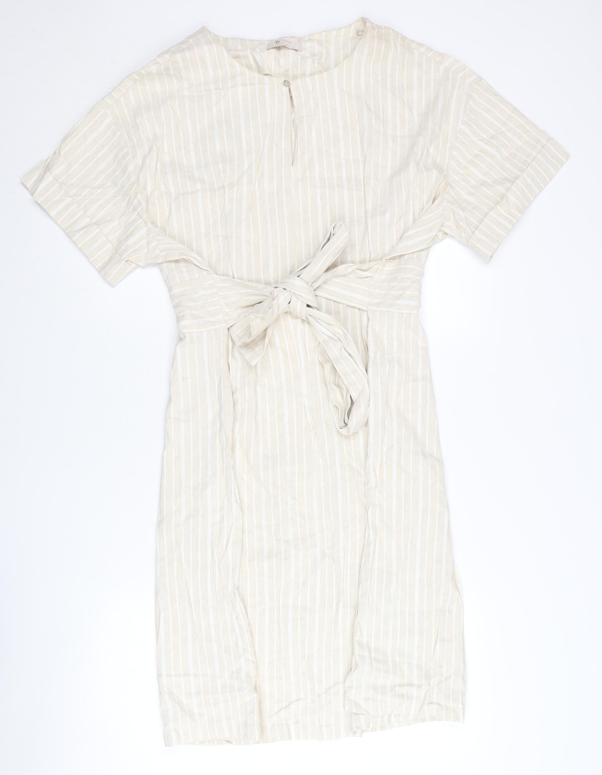 Tu Women Beige Striped Belted Shift Dress Size 20 Knee Length
