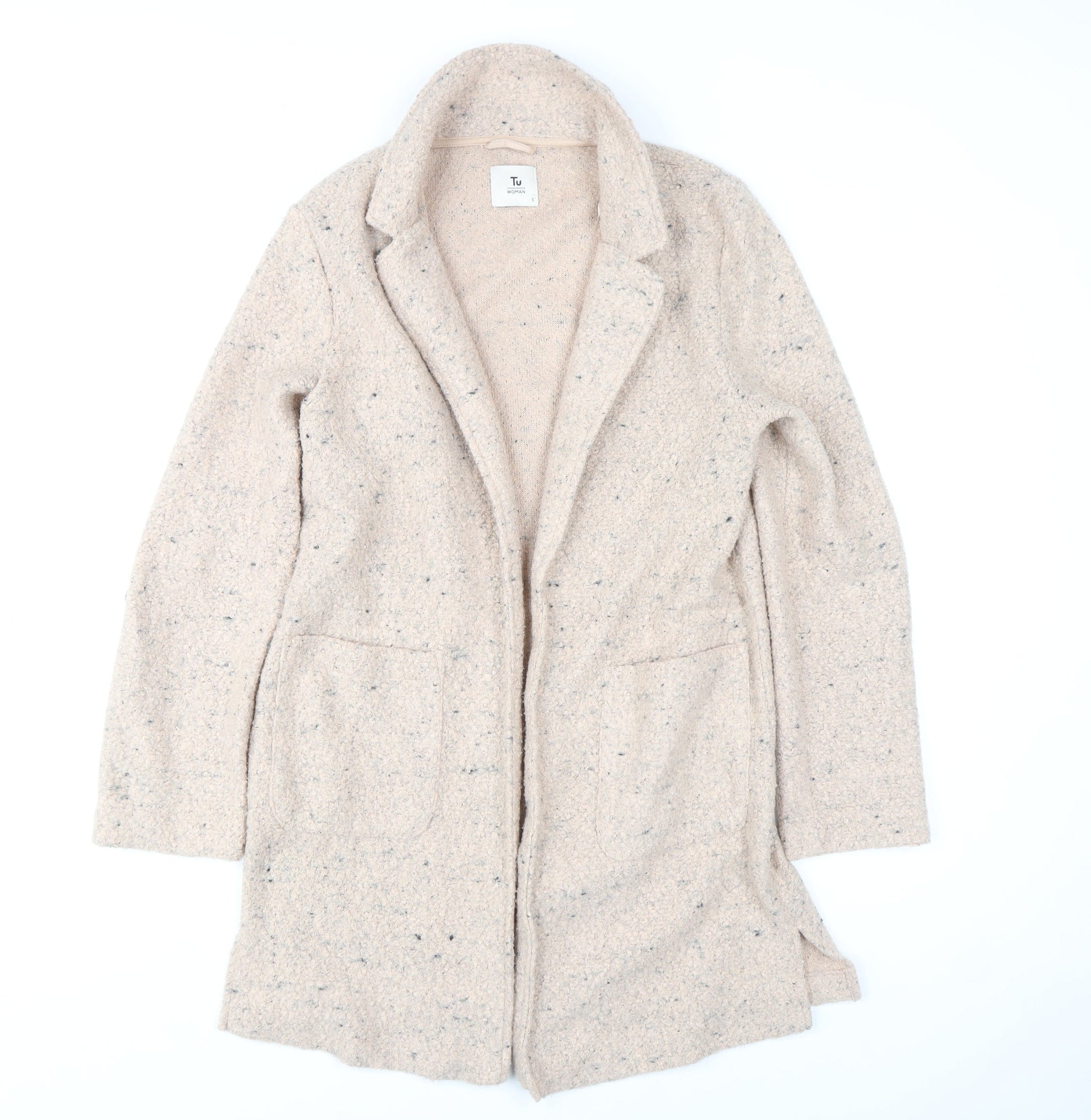 Tu Women Beige Wool Blend Coatigan Small Open Front Mid Length