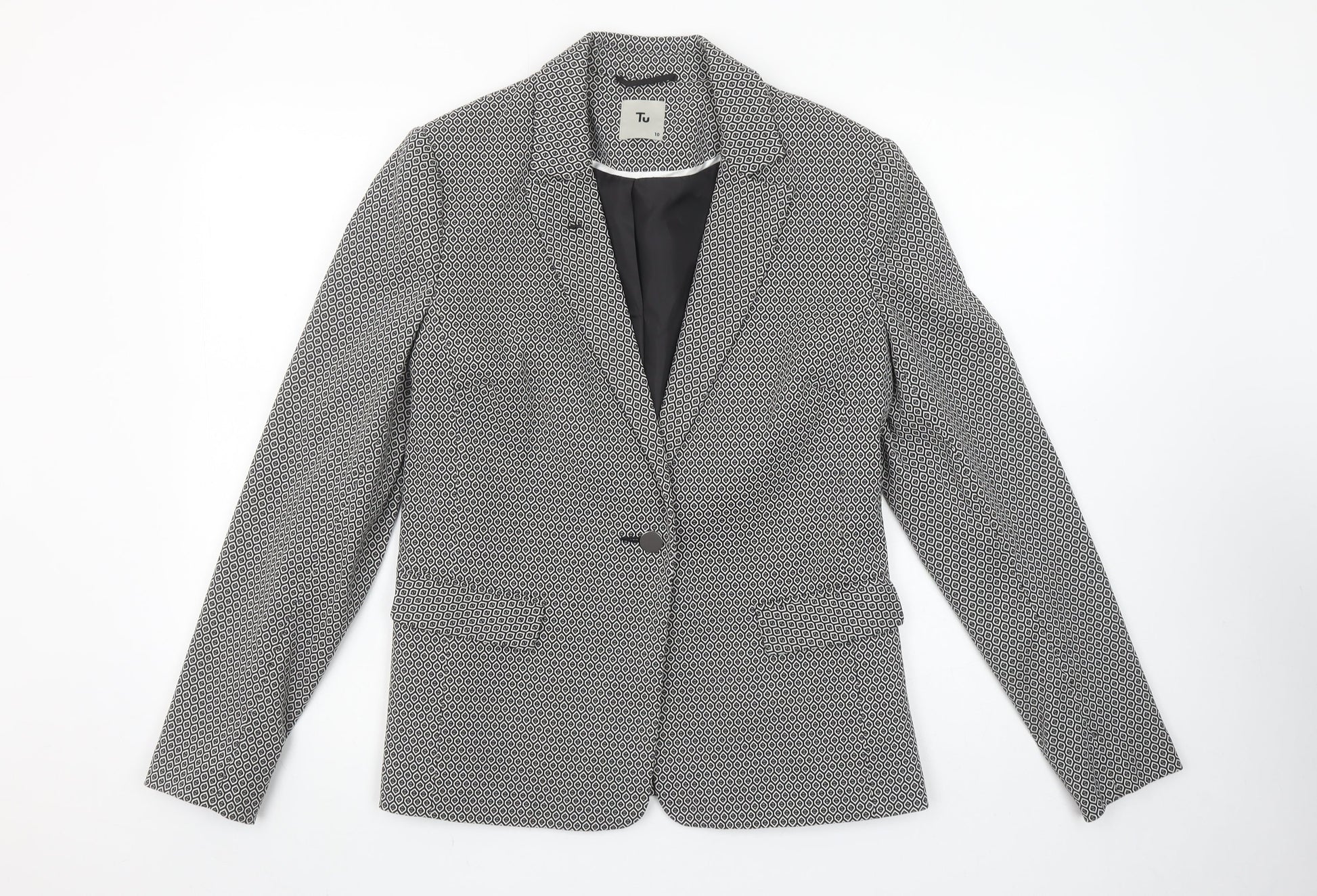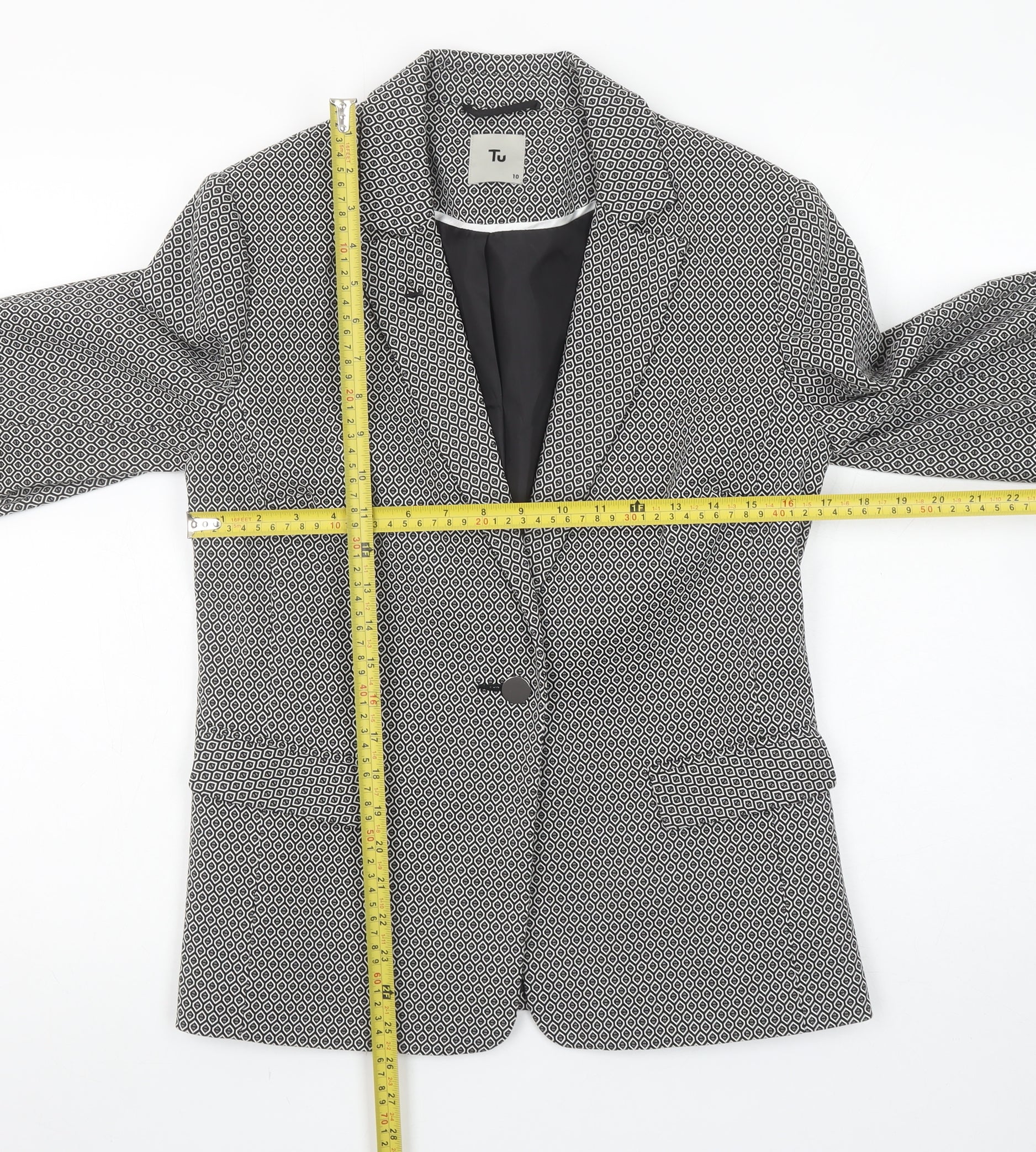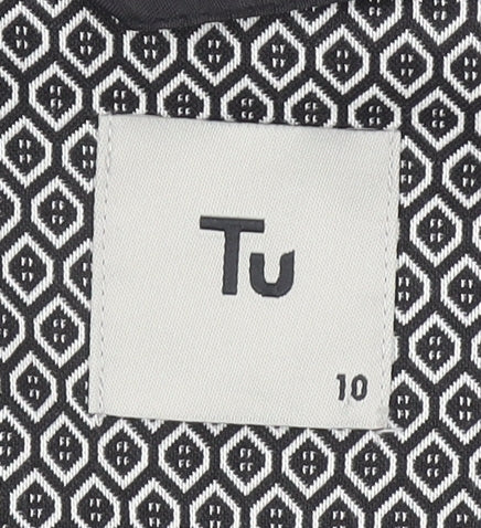 Tu Women Black Geometric Single-Breasted Blazer Size 10