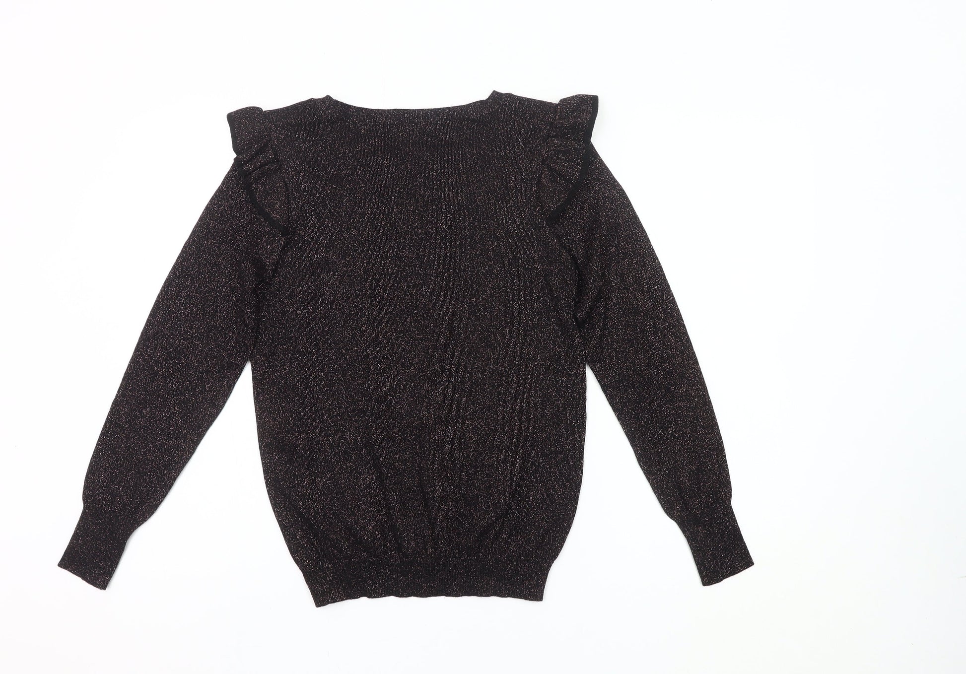 Tu Women Black Glitter Ruffle Jumper Size 12 Crew Neck Knit