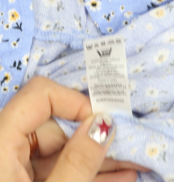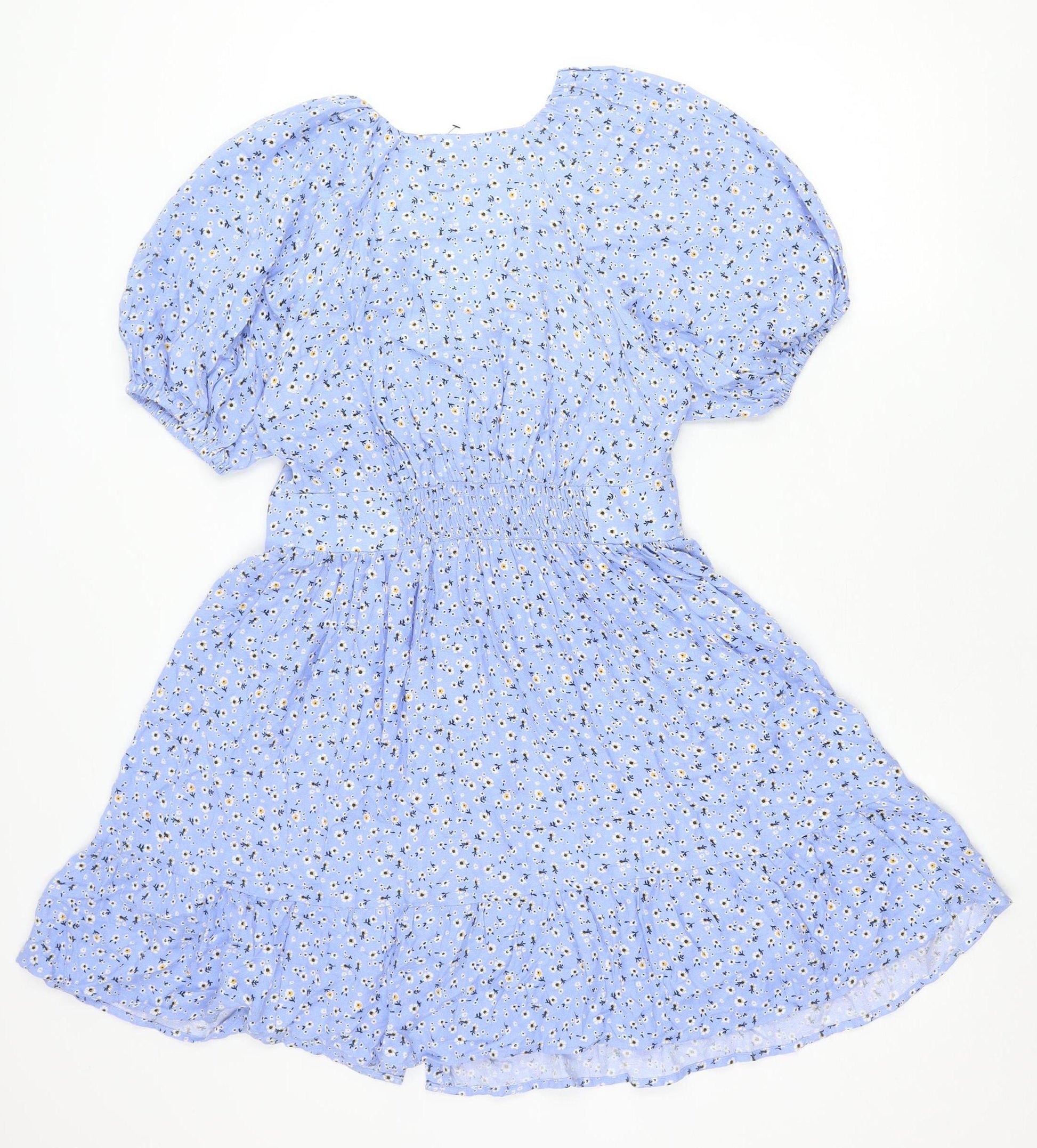 Tu Women Blue Floral Short Puff Sleeve A-Line Dress Size 10