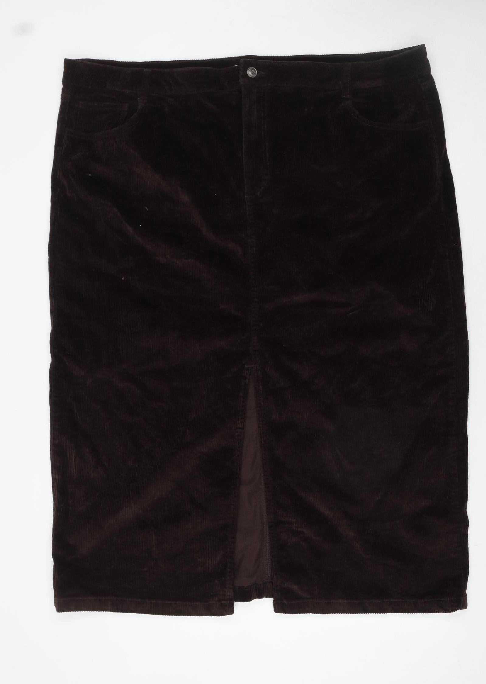 Tu Women Brown Corduroy Pencil Skirt Size 24 Stretch Pockets