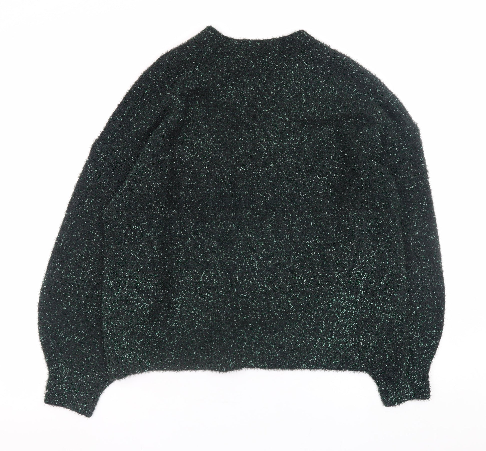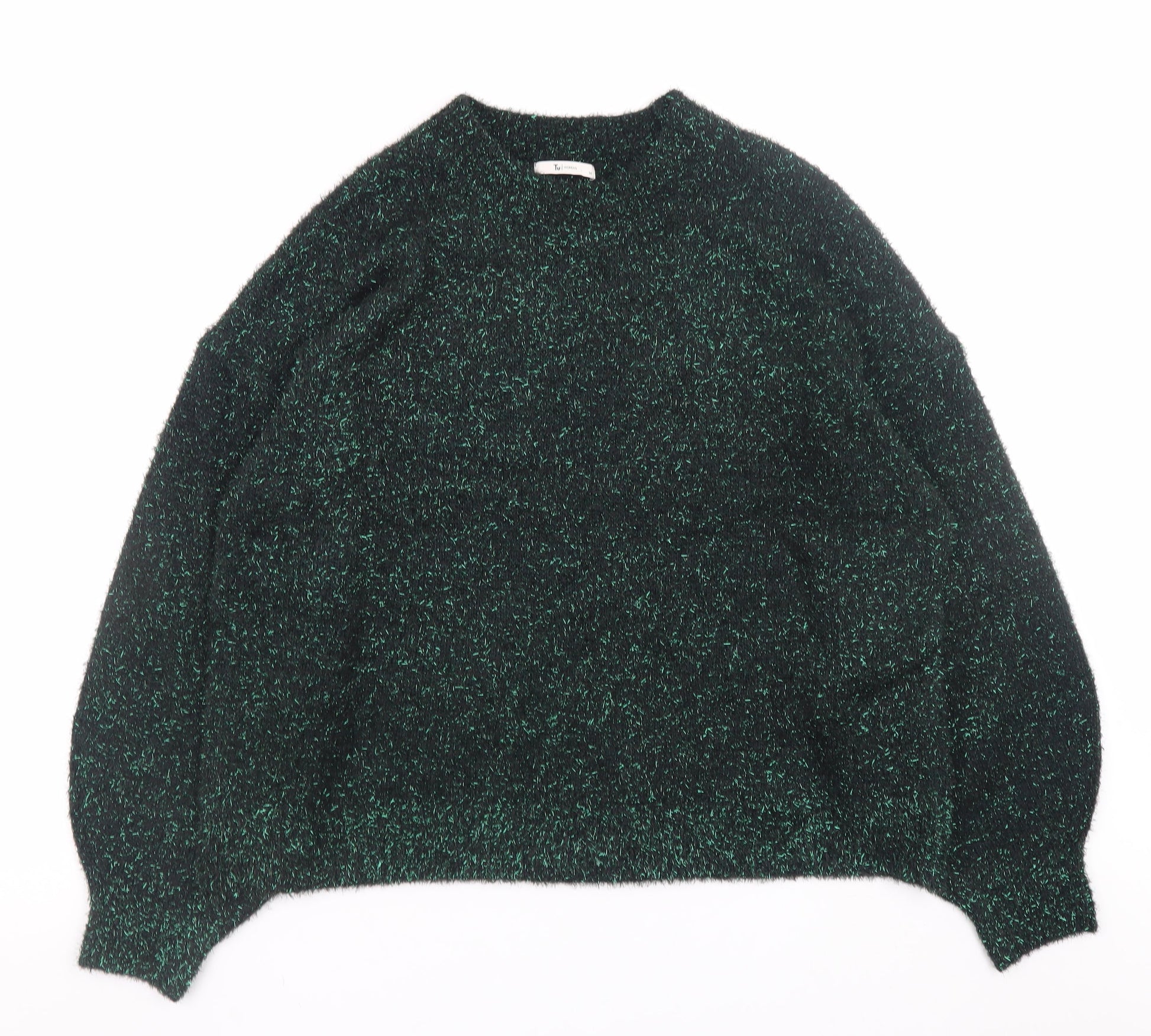 Tu Women Green Glitter Knit Relaxed Pullover Jumper Size 14