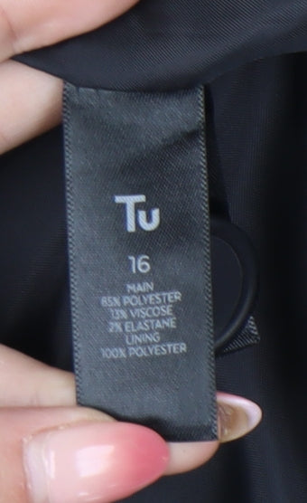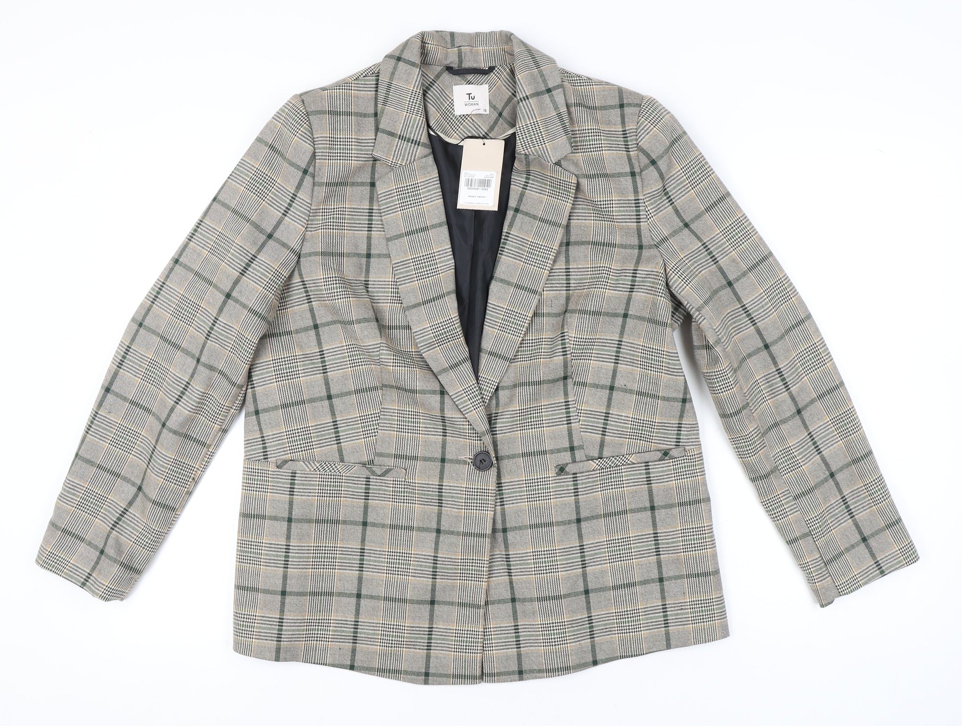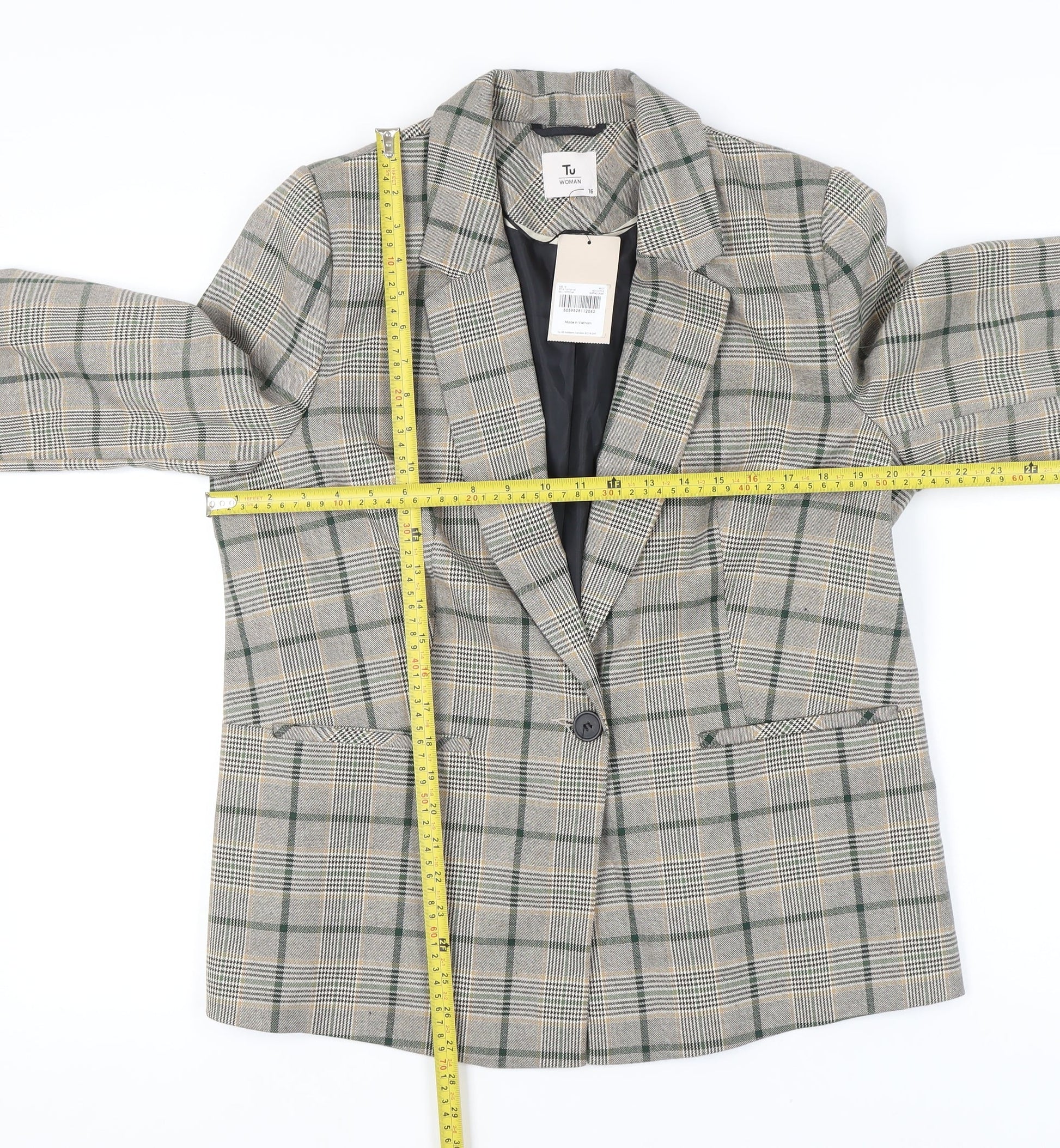 Tu Women Grey Check Blazer Size 16 Regular Fit Work Jacket