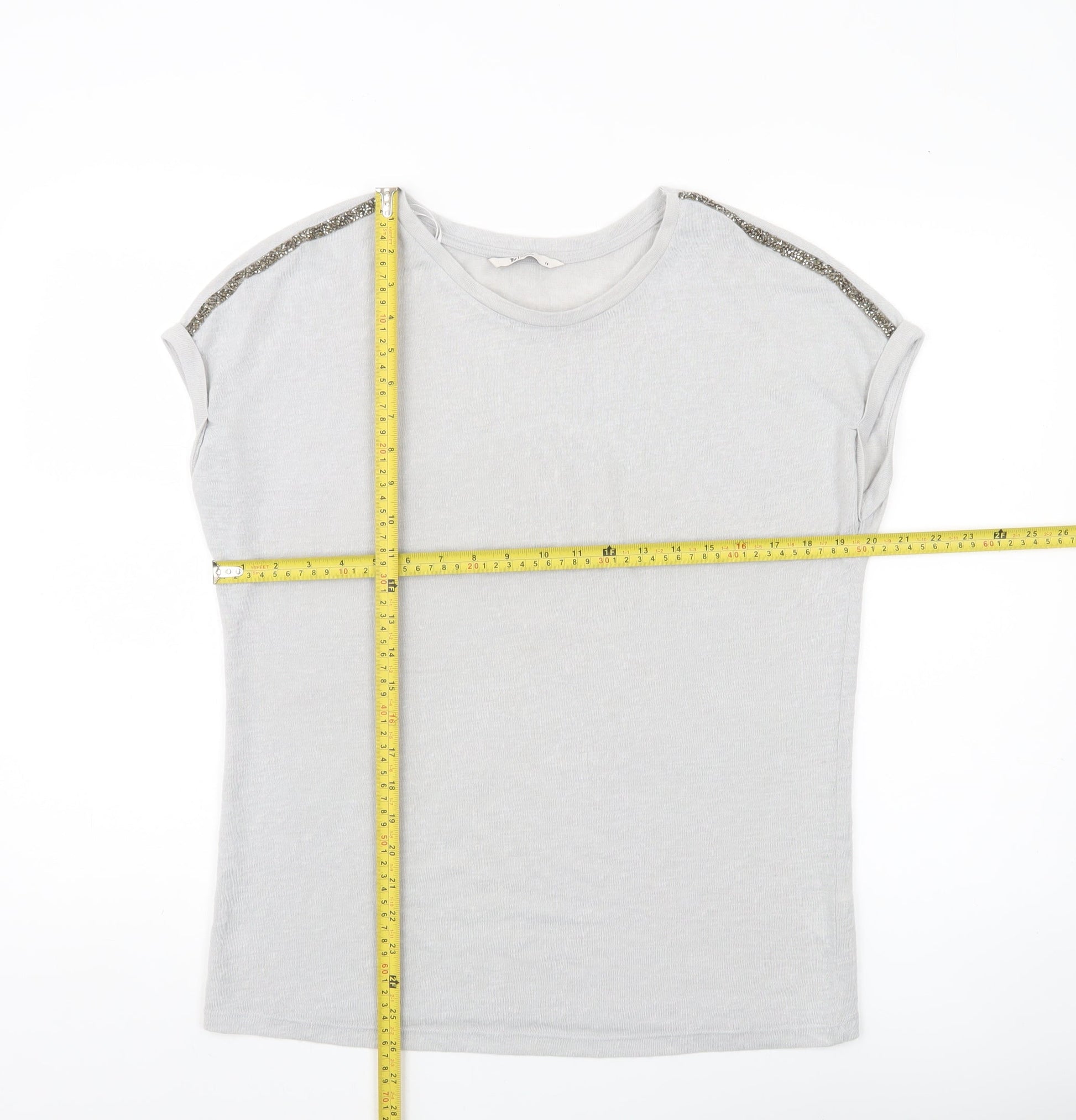 Tu Women Grey Sequin Shoulder Crew Neck T-Shirt Size 14