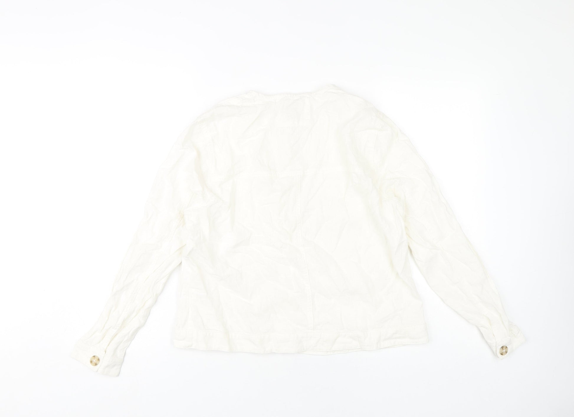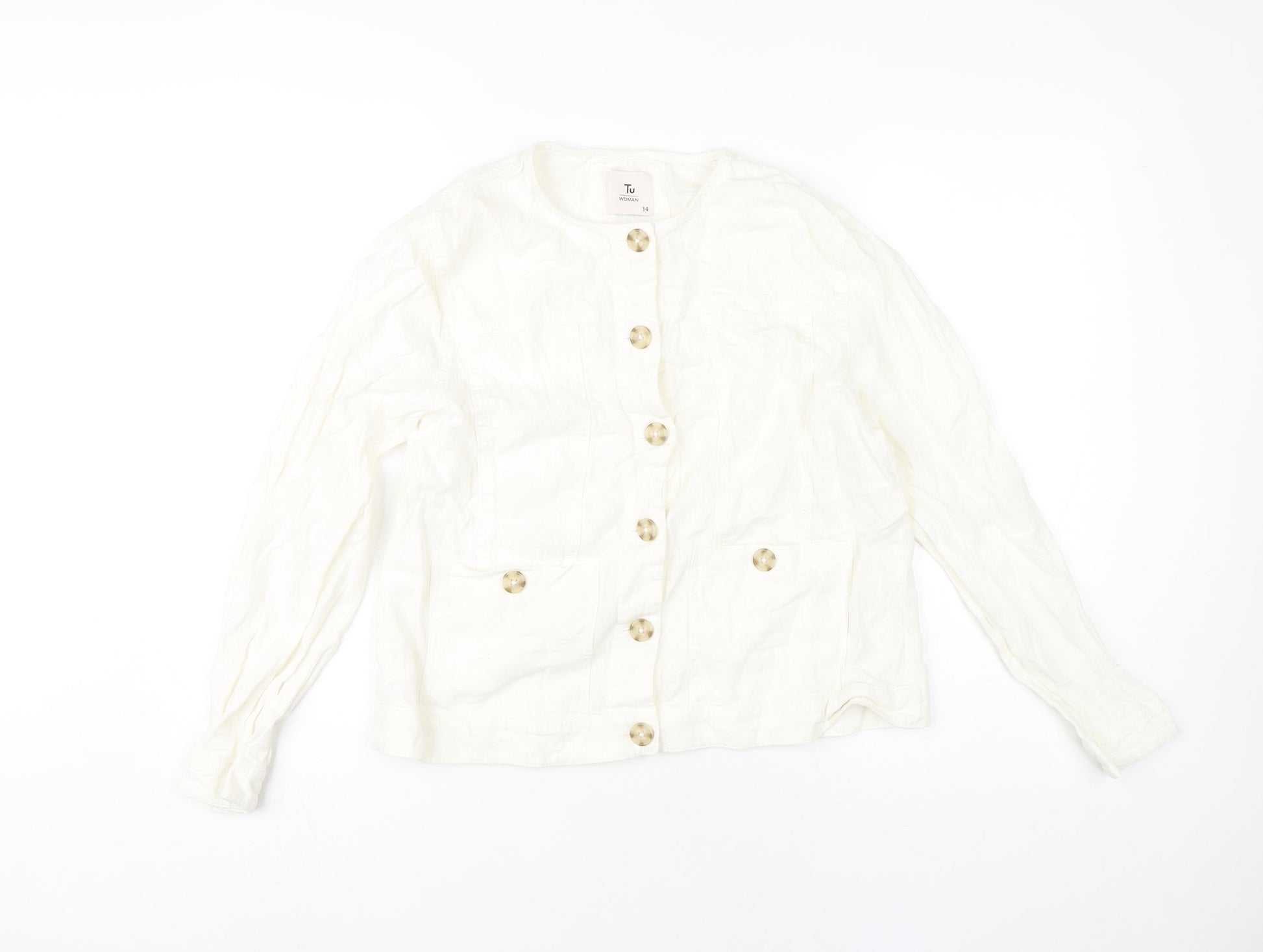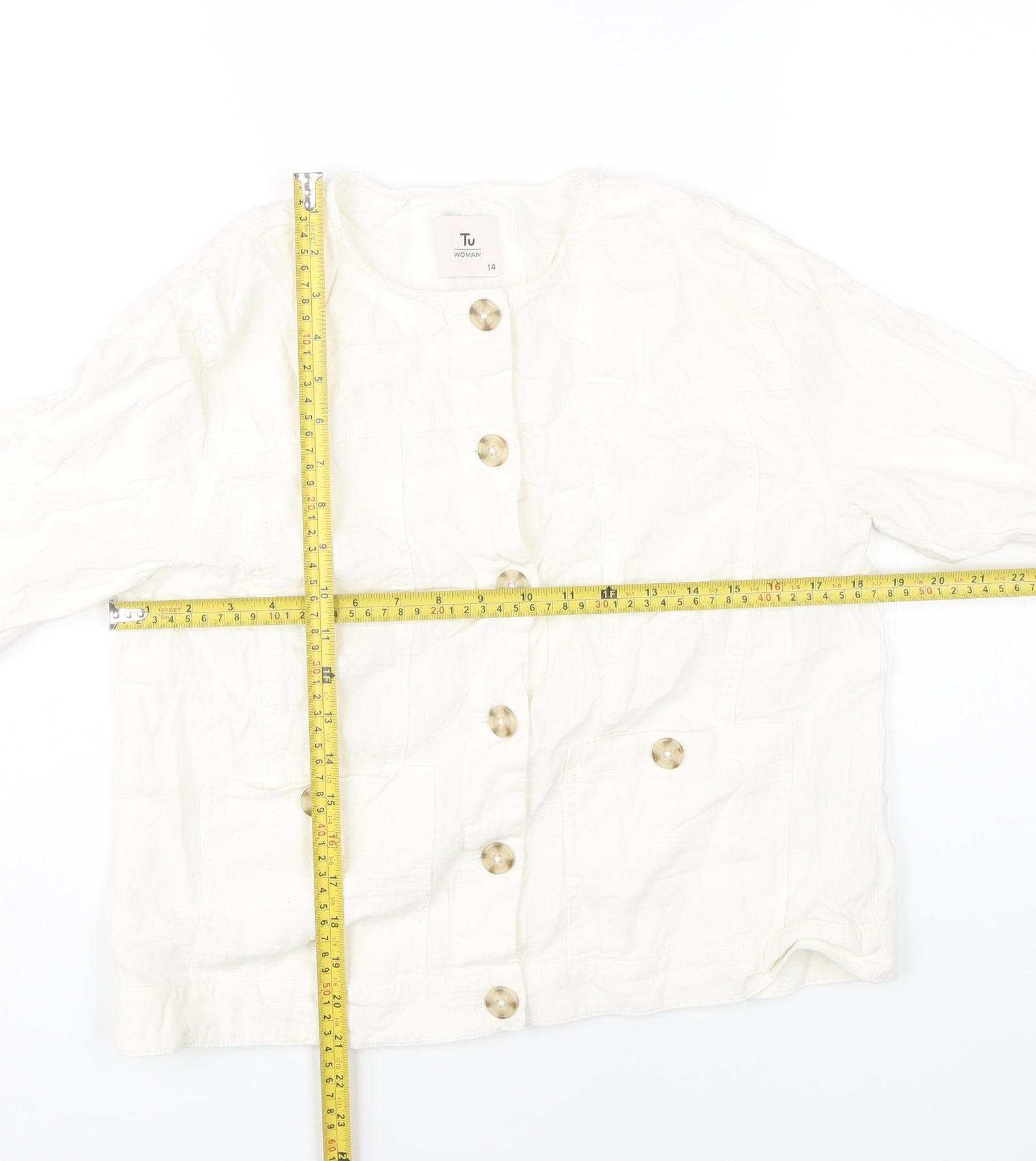 Tu Women Ivory Linen Viscose Button-Up Shirt Size 14 Long Sleeve