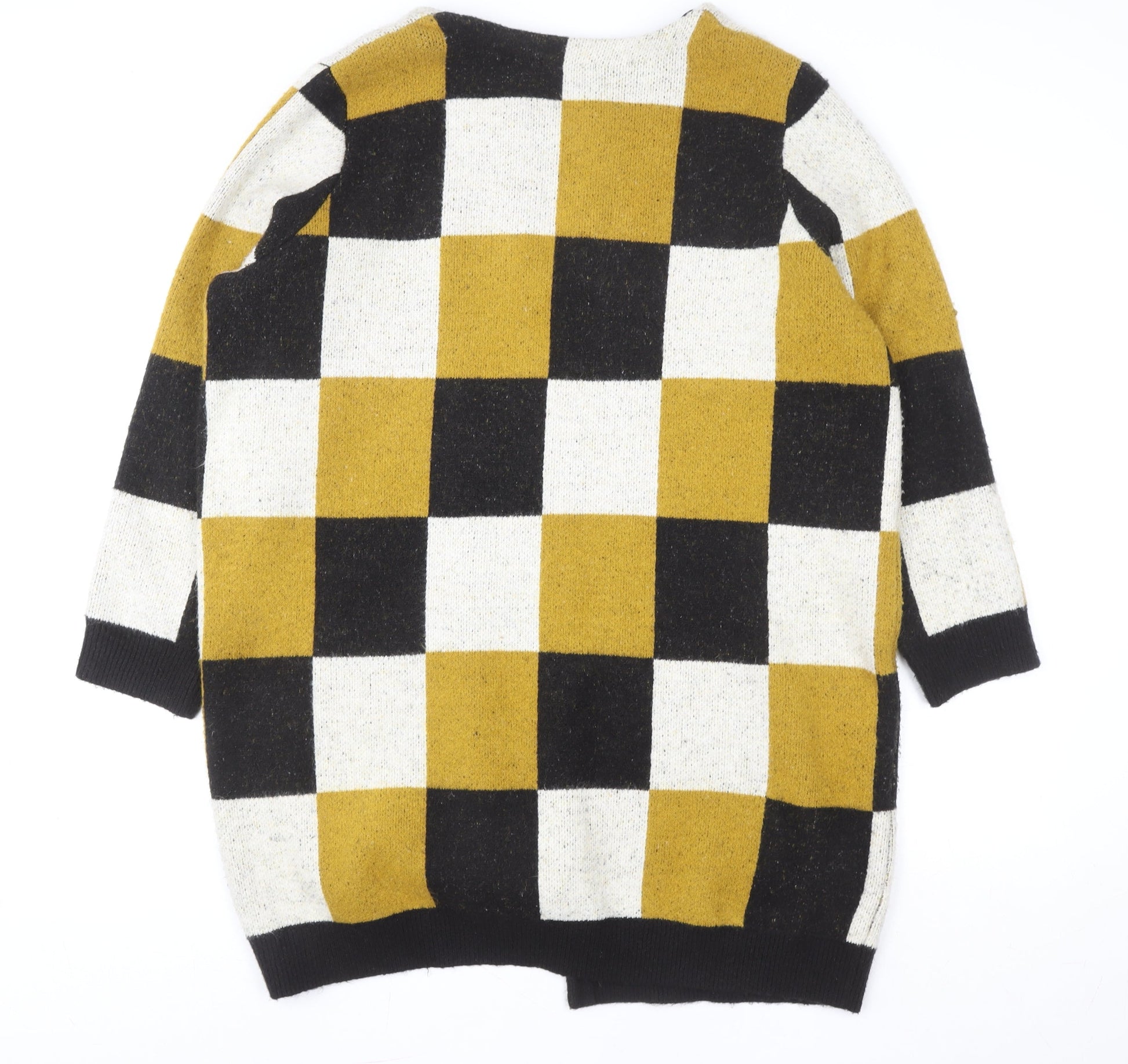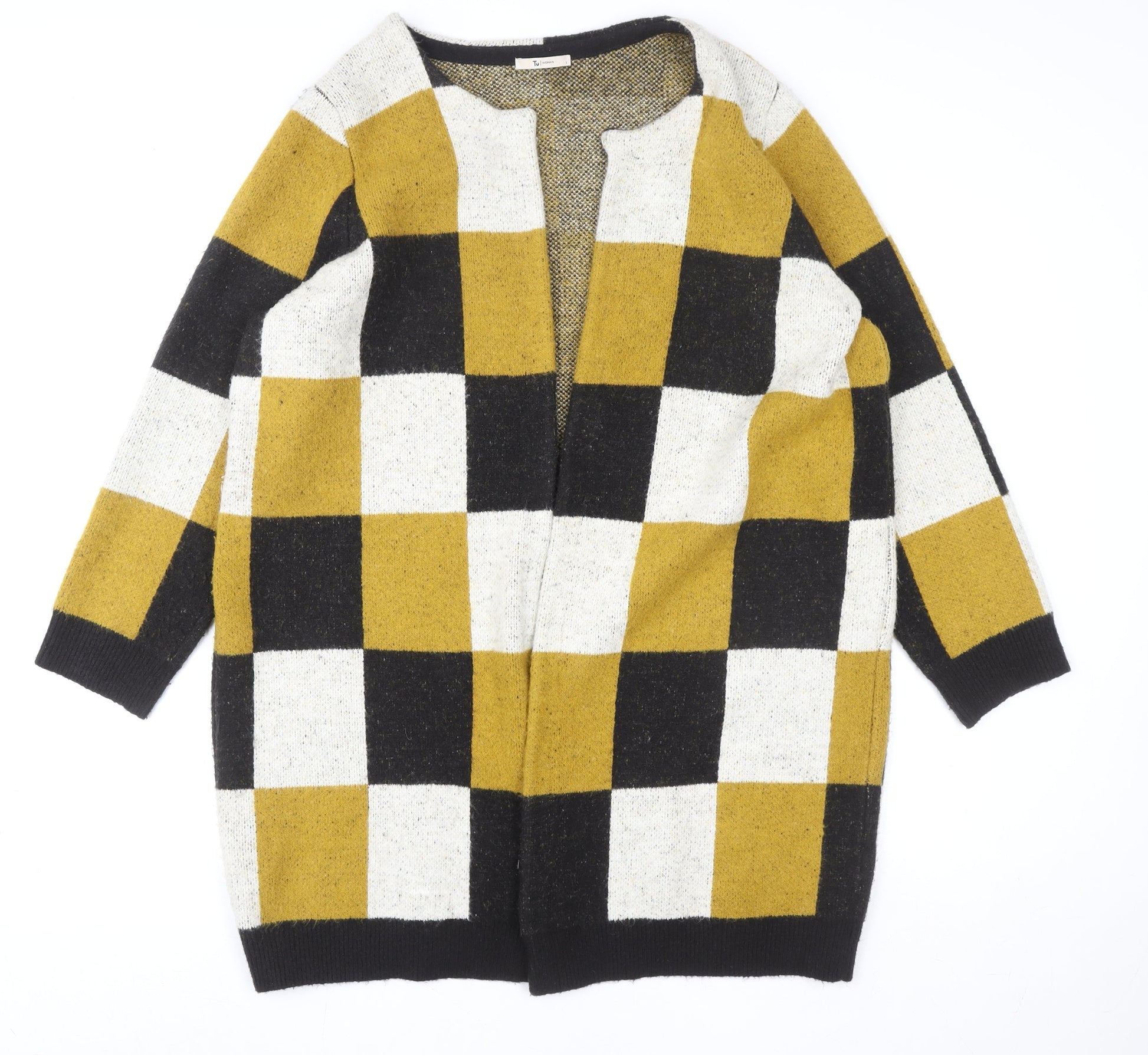 Tu Women Mustard Black Check Cardigan L Acrylic Blend Casual