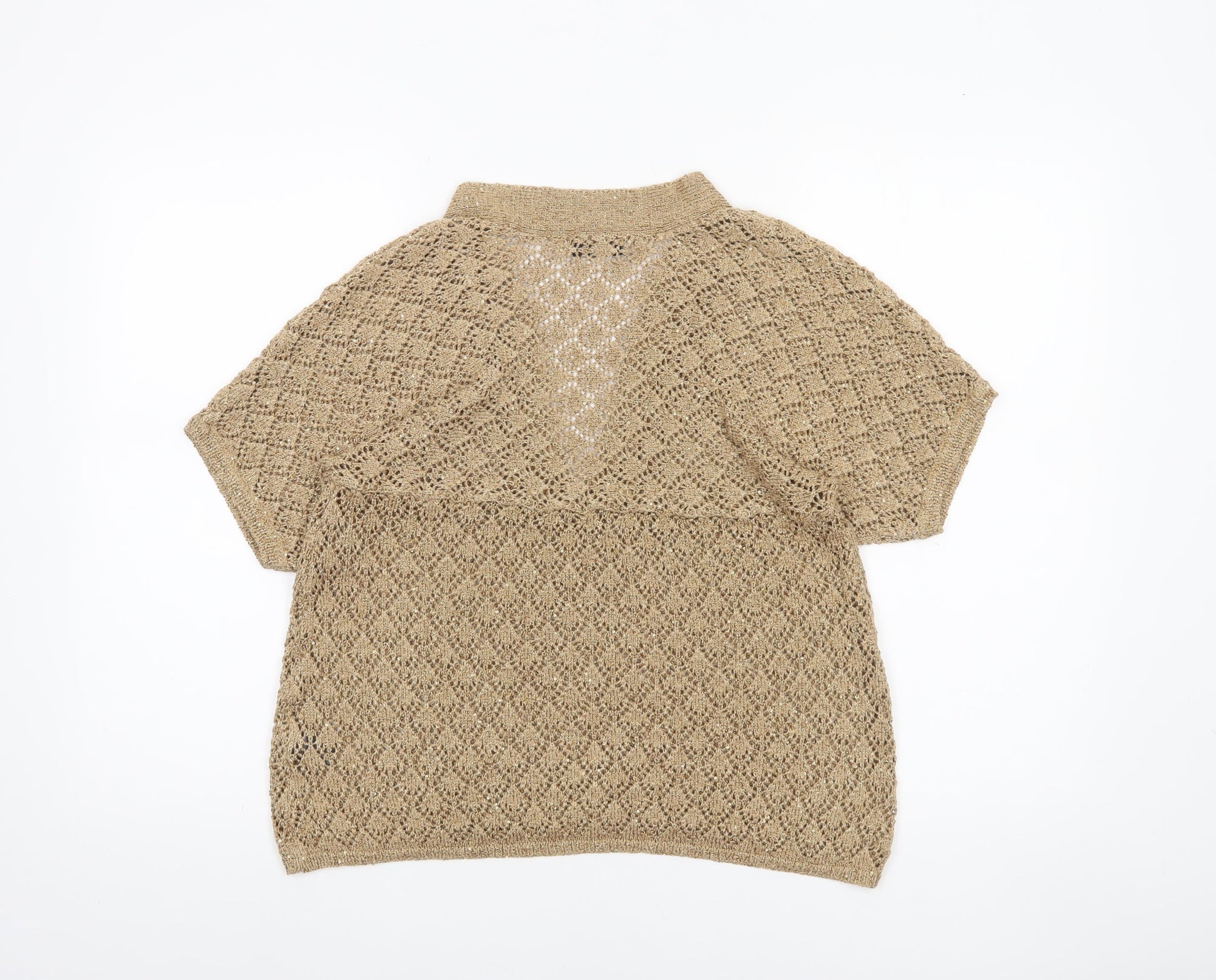 TU Women’s Beige Open-Knit V-Neck Short Sleeve Jumper Size 18
