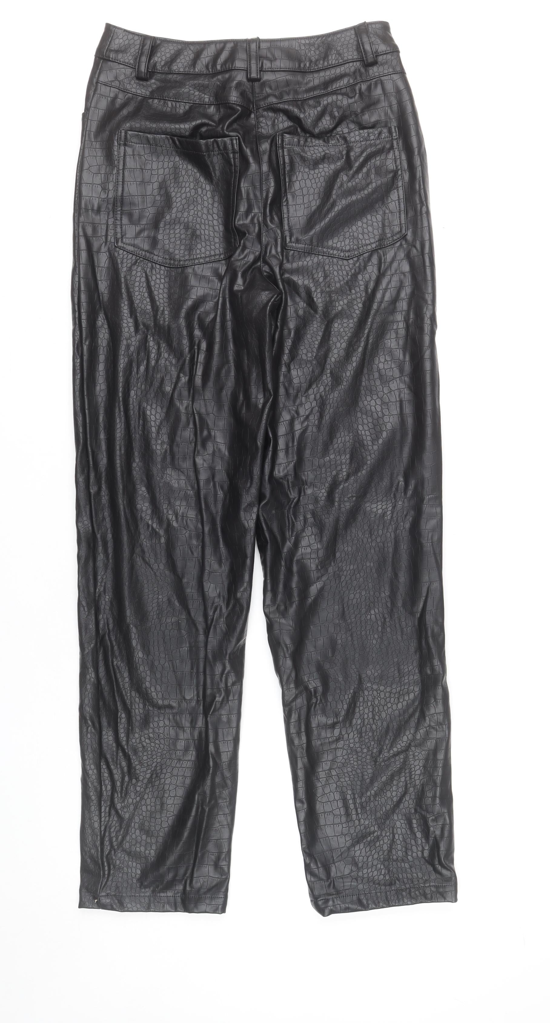 Tu Women’s Black Croc Effect Faux Leather High Rise Straight Trousers Size 8
