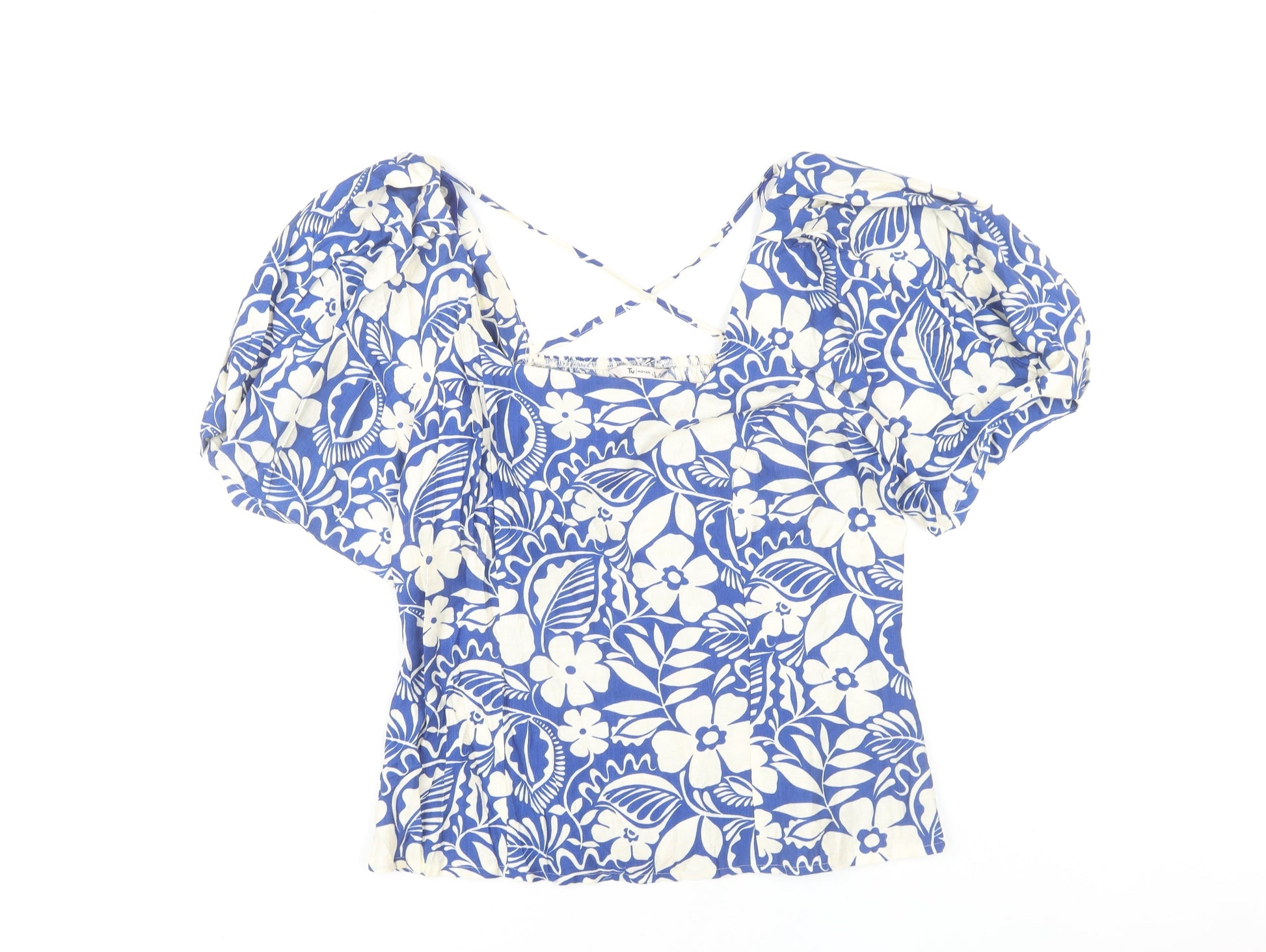 Tu Women’s Blue Floral Peasant Blouse Size 20 Puff Sleeve Summer Top