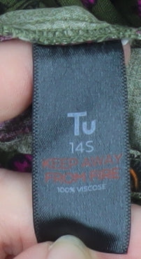 Tu Women’s Green Floral Cropped Lightweight Viscose Trousers Size 14S