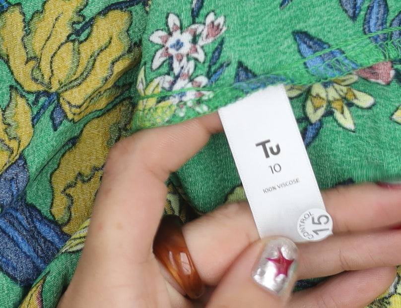 Tu Women’s Green Floral Knee Length Shift Dress Size 10