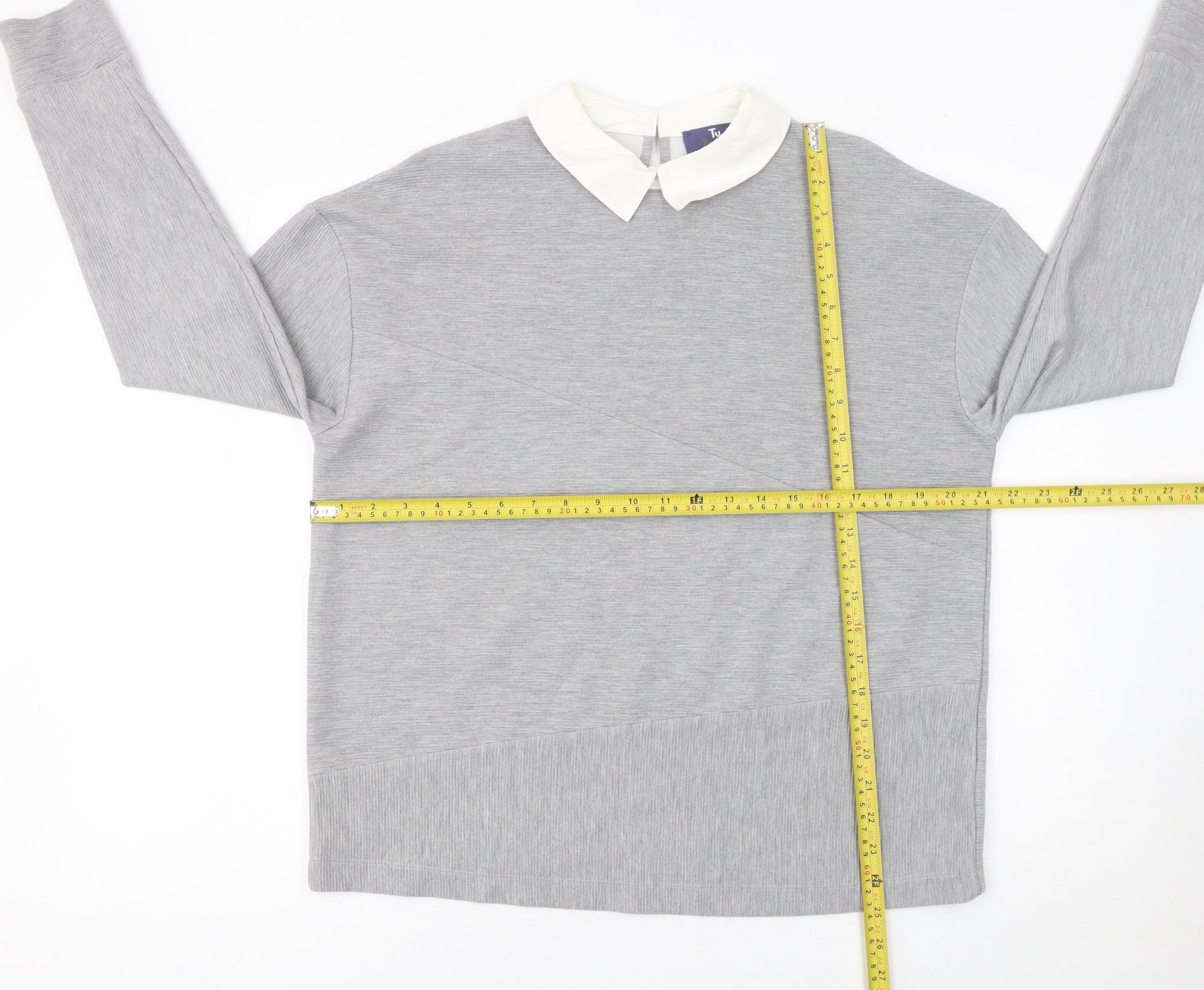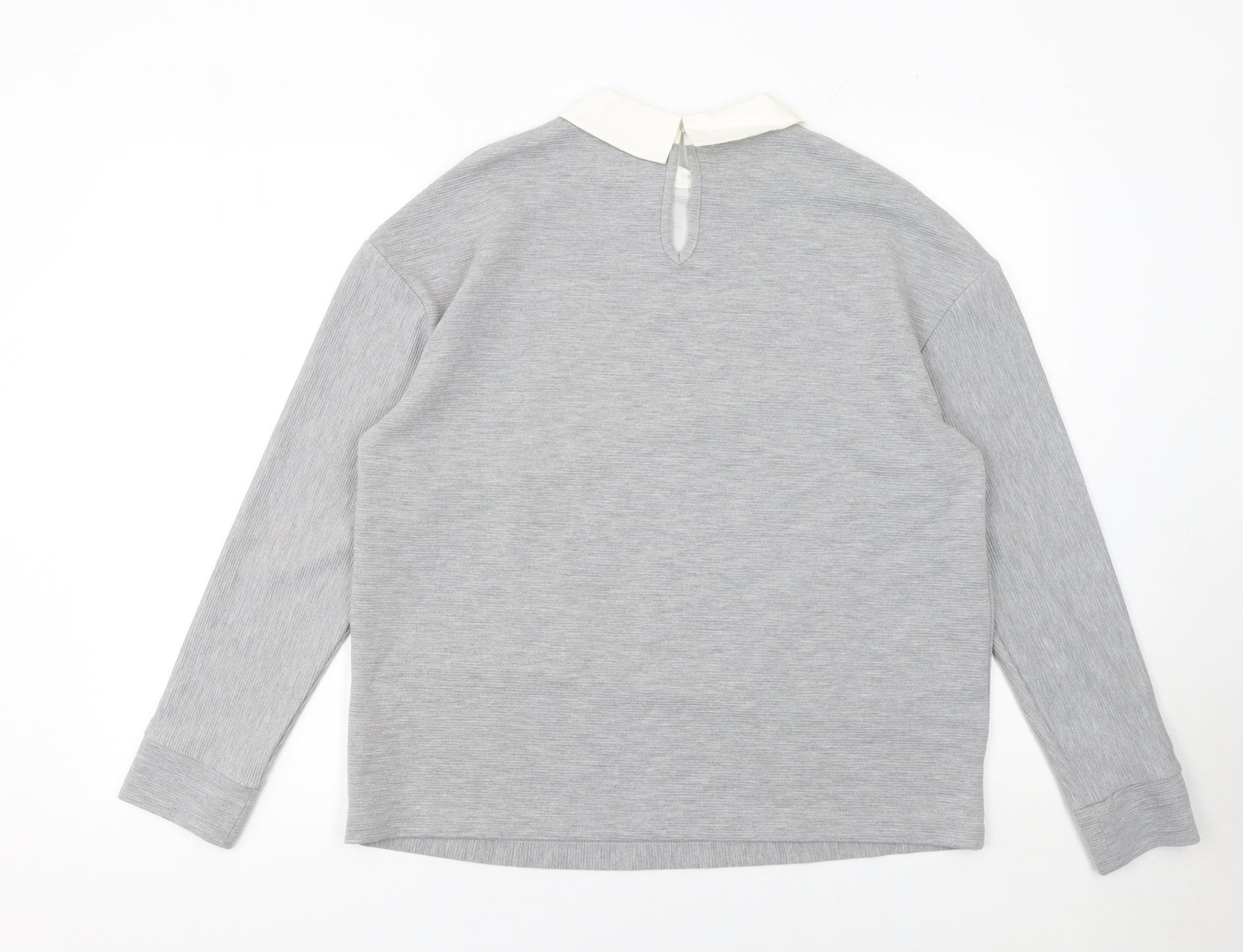 Tu Women’s Grey Collared Long Sleeve Cotton Blend Blouse Size 14