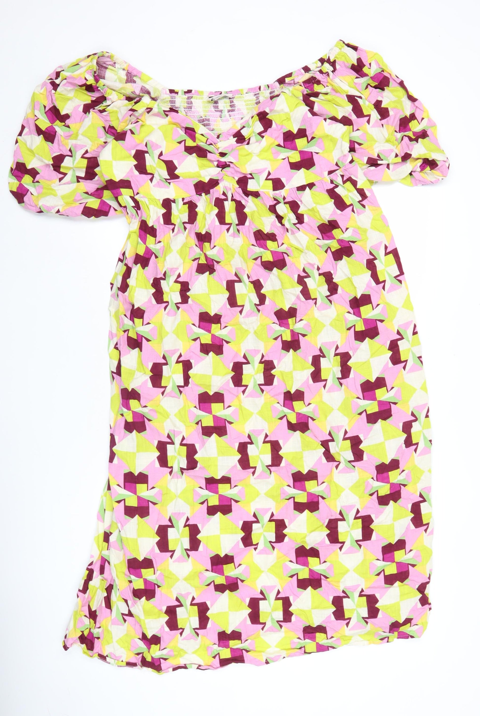 Tu Women’s Pink Green Geometric Cotton Shift Dress Size 16