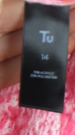 Tu Women’s Pink Orange Knit Jumper Size 14 Crew Neck Pullover