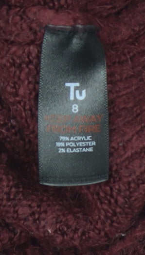 Tu Women’s Red Studded Mock Neck Chunky Knit Jumper Size 8