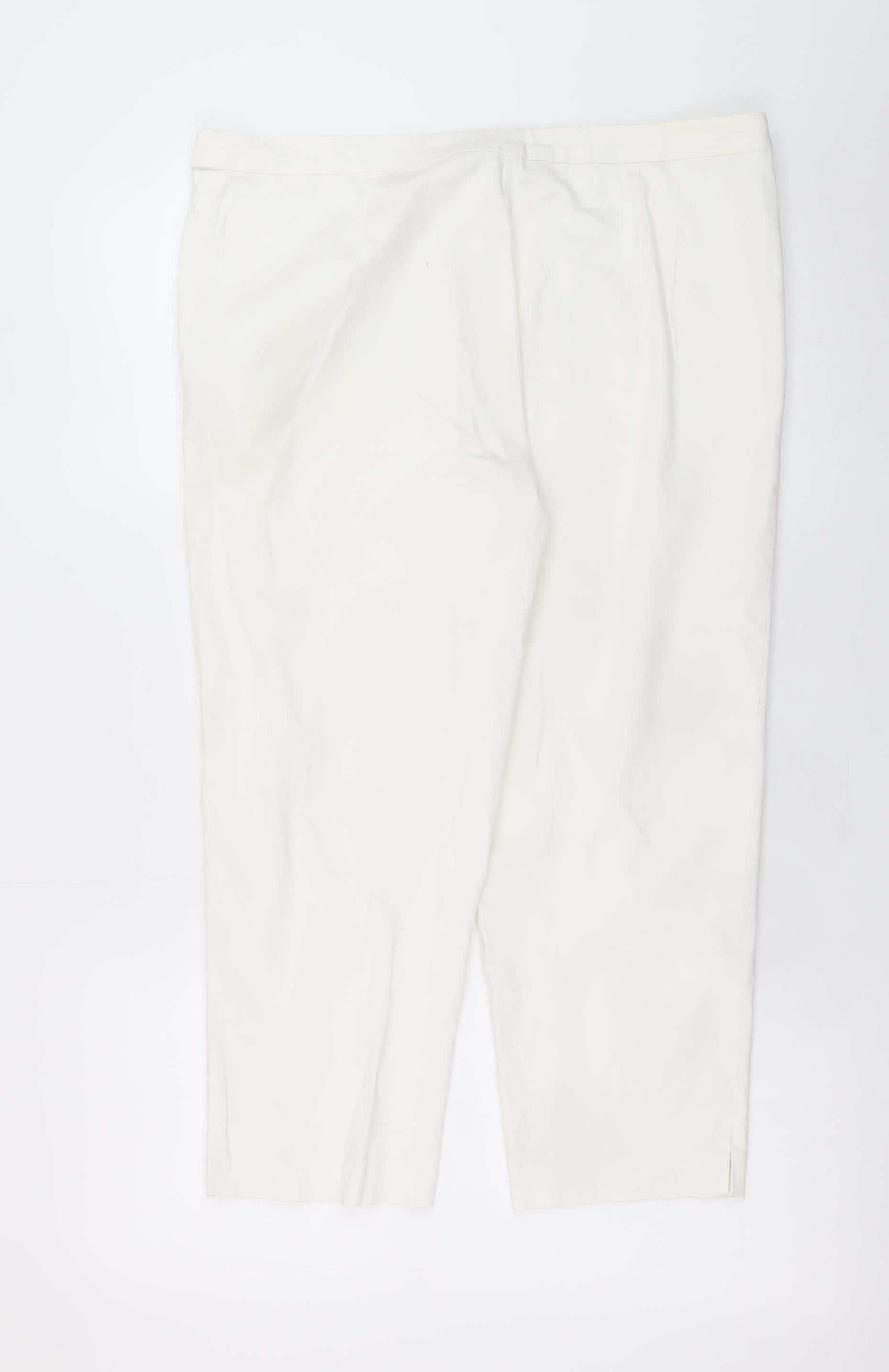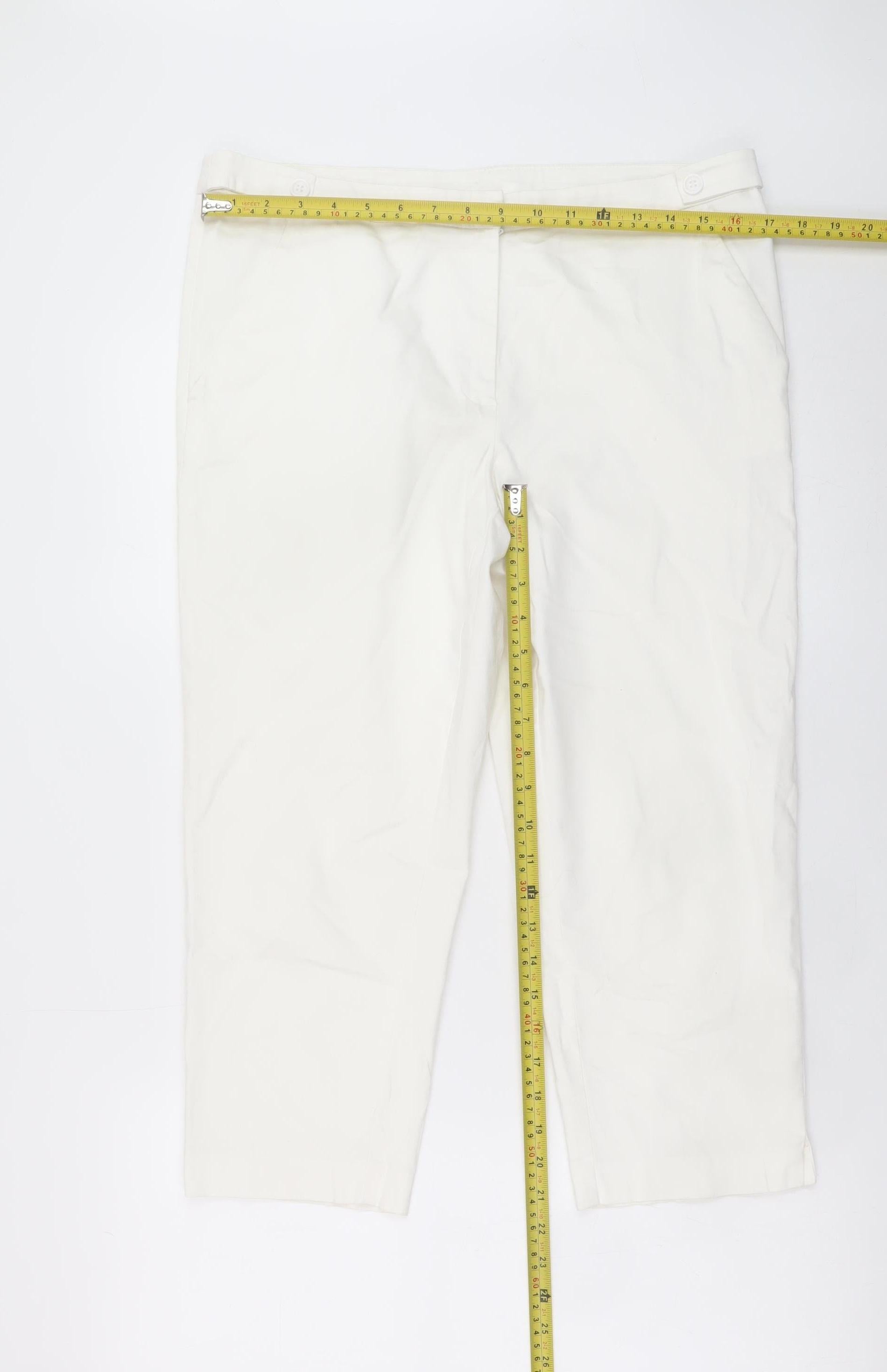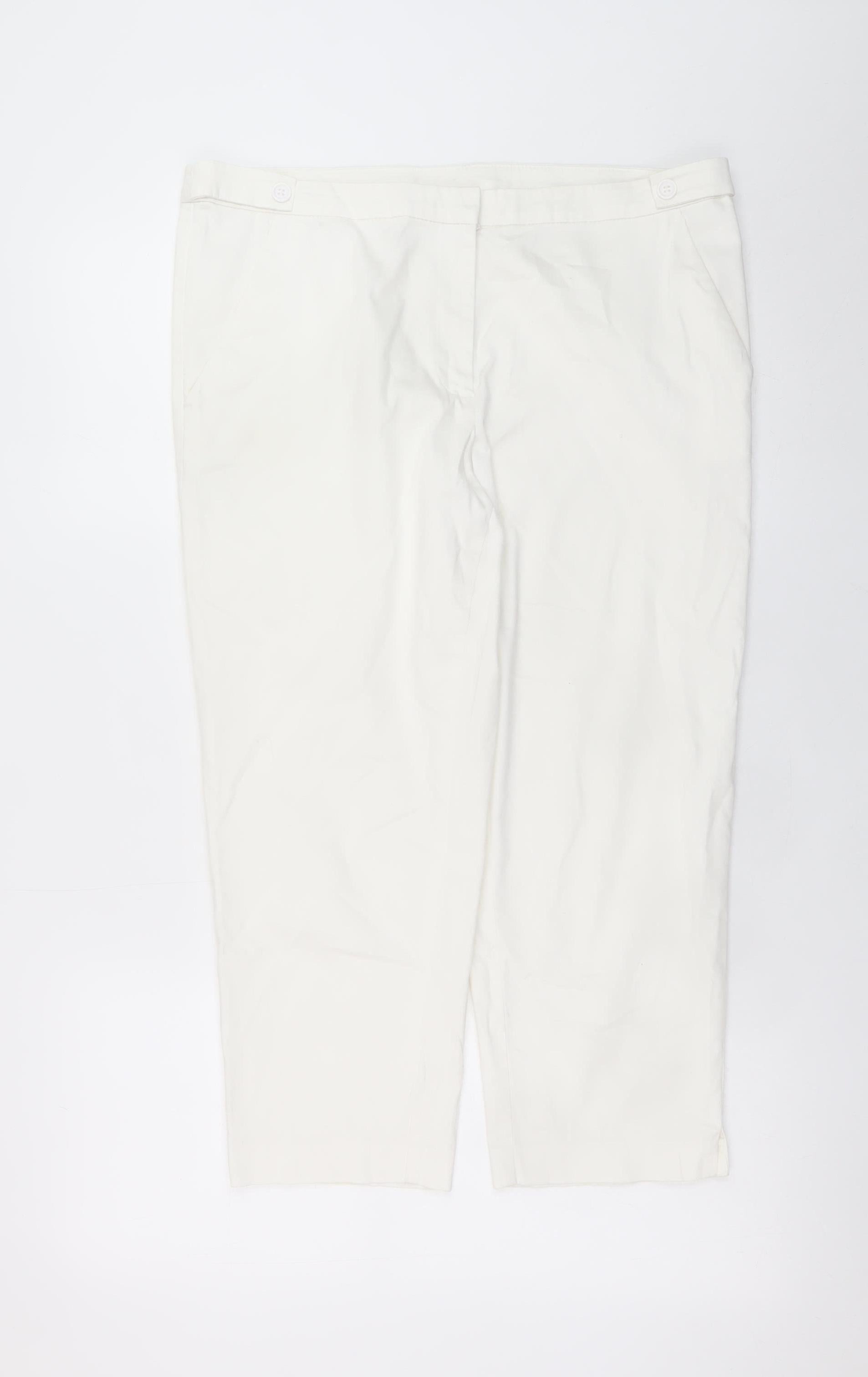Tu Women White Cotton Stretch Capri Trousers Size 14