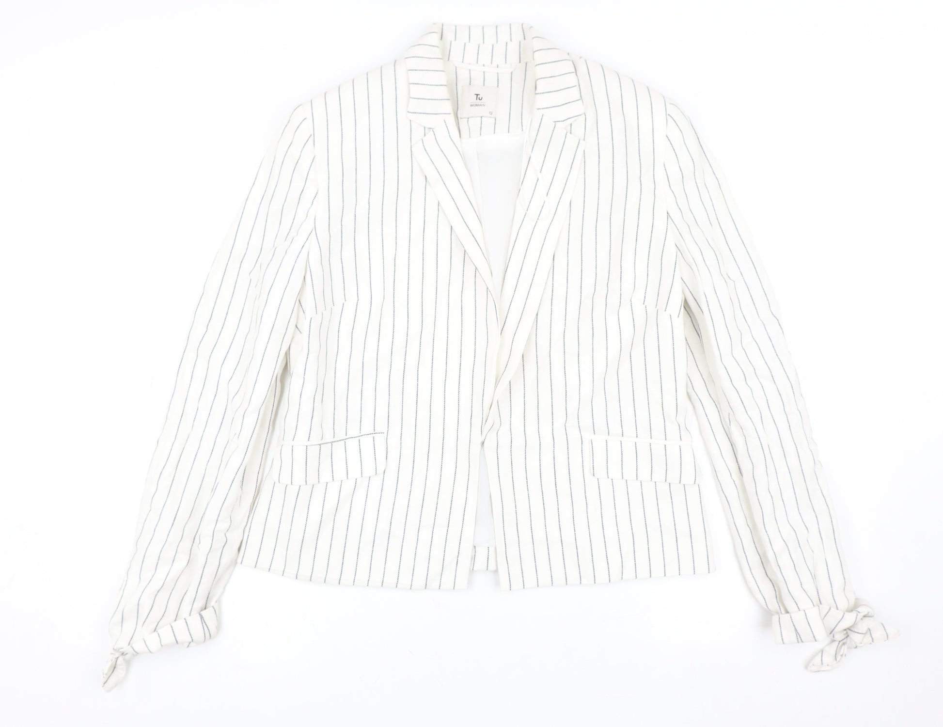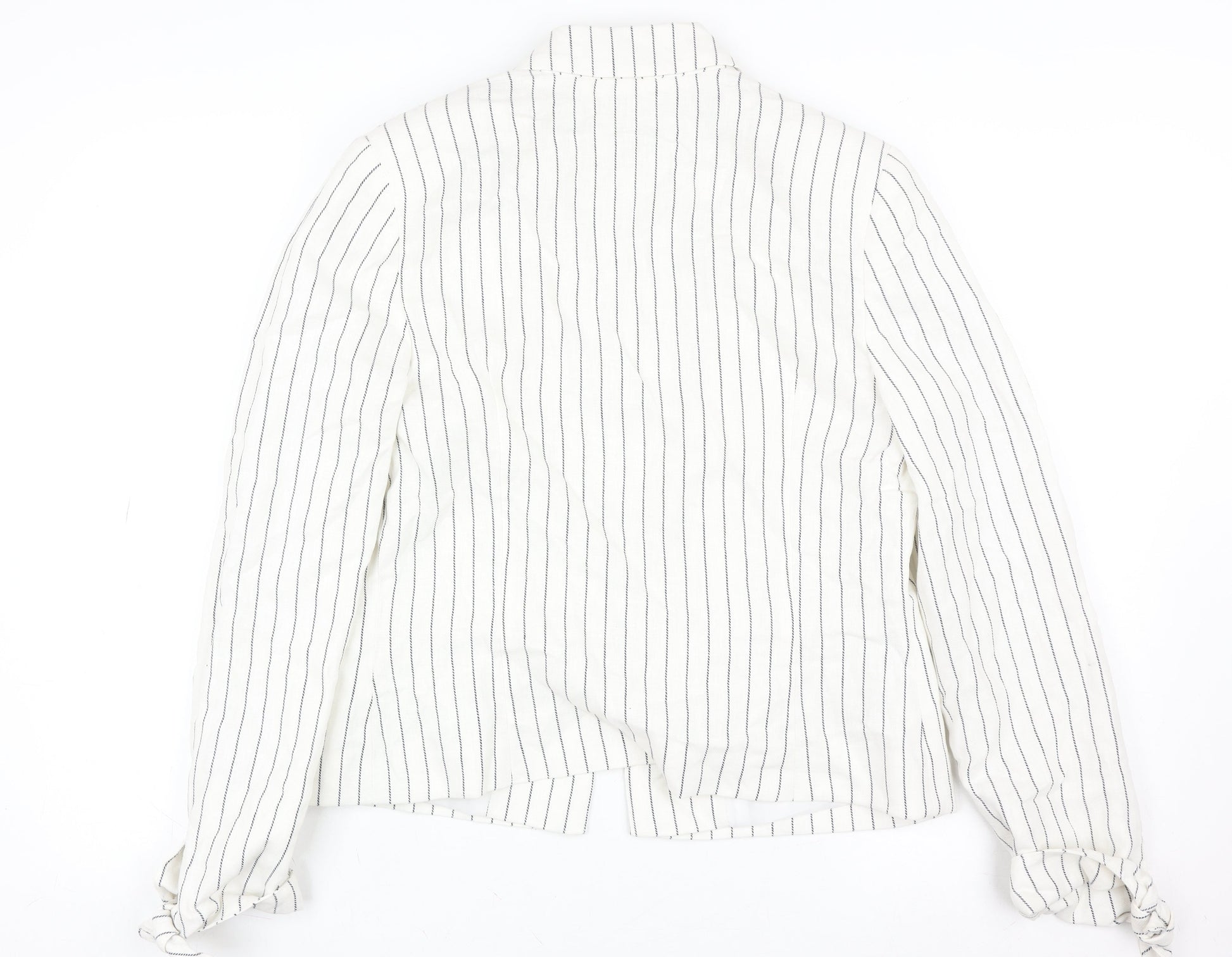 Tu Women White Striped Linen Blend Single-Breasted Blazer Size 12