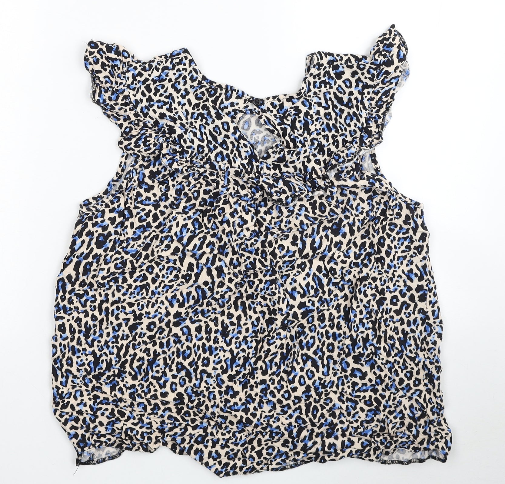 TU Womens Beige Animal Print Viscose Basic Blouse Size 12 Boat Neck - Leopard Print