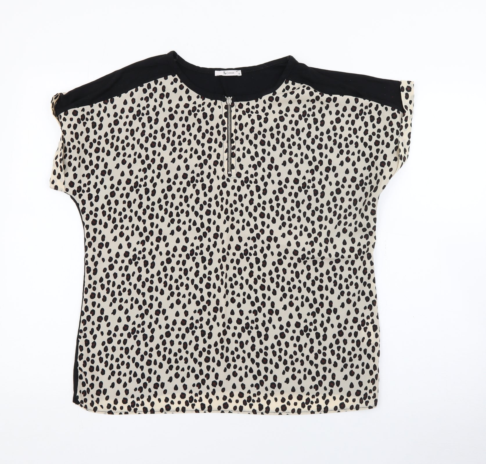 TU Womens Beige Animal Print Viscose Basic Blouse Size 12 Crew Neck