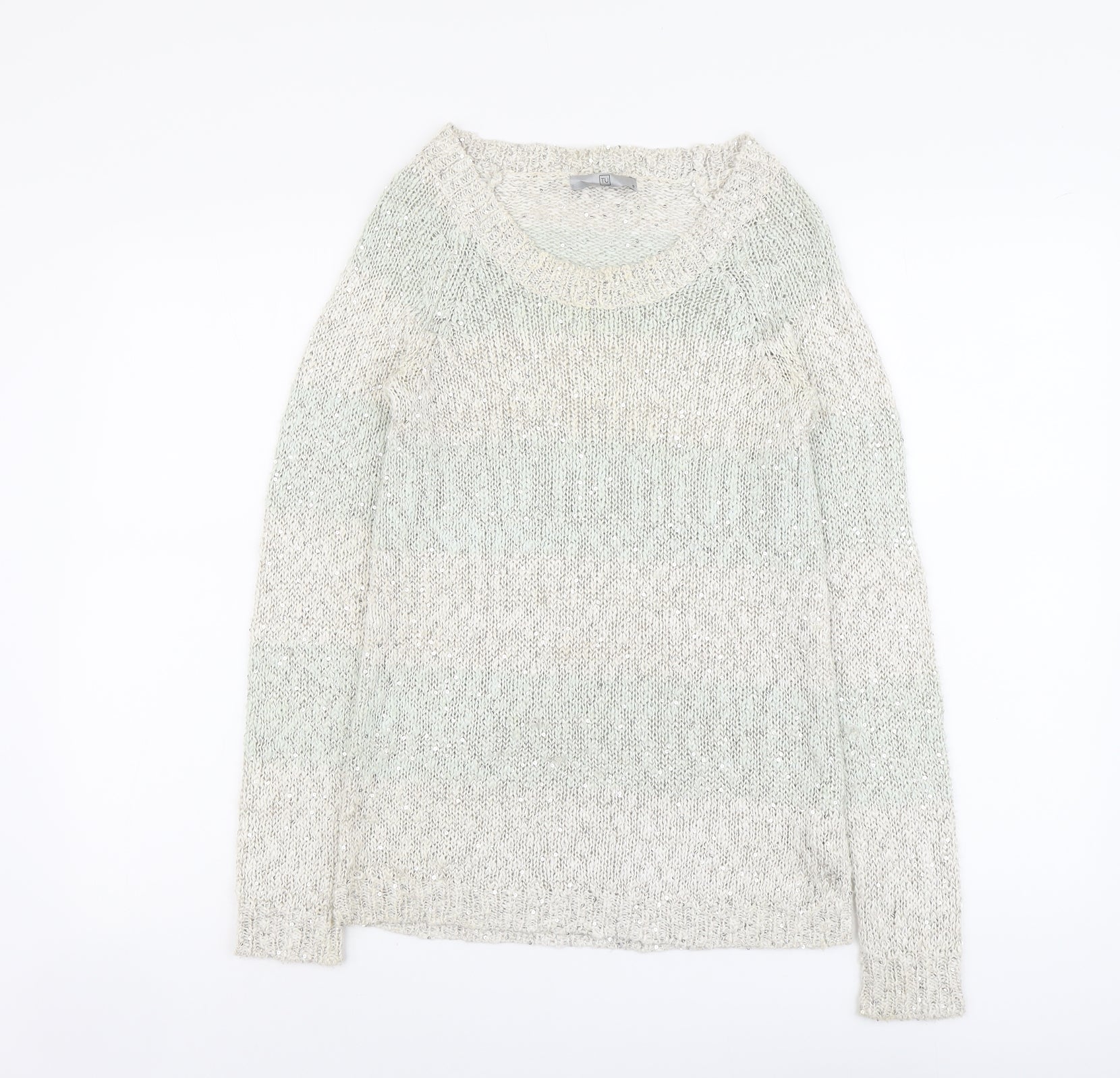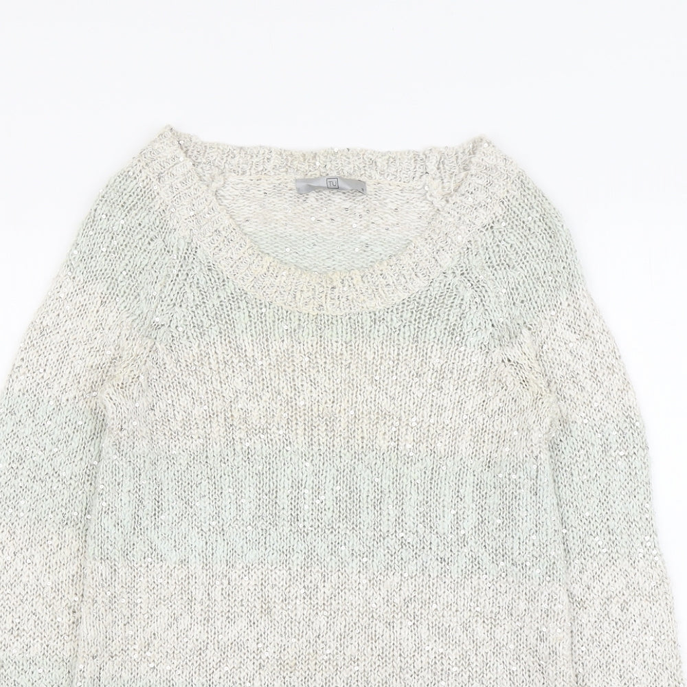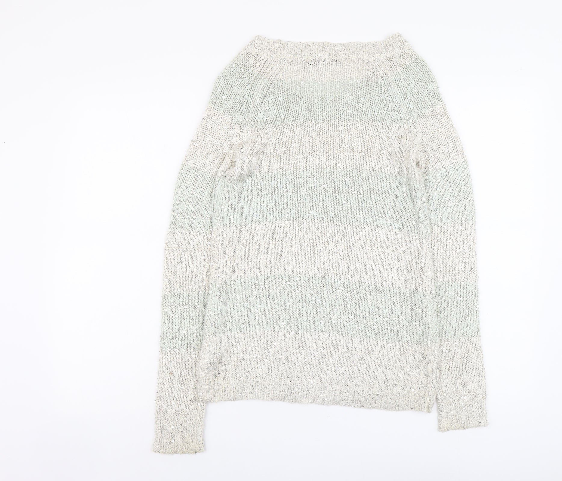 TU Womens Beige Boat Neck Striped Cotton Pullover Jumper Size 8