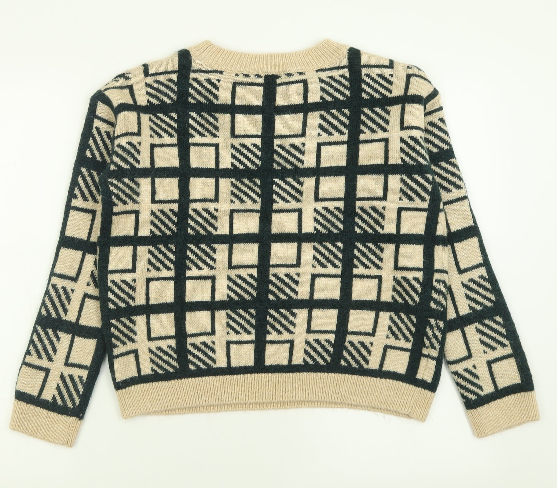 TU Womens Beige Crew Neck Geometric Acrylic Pullover Jumper Size 12